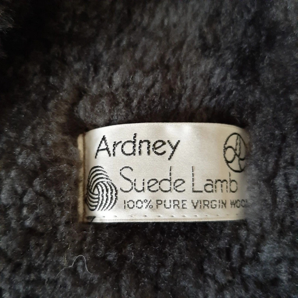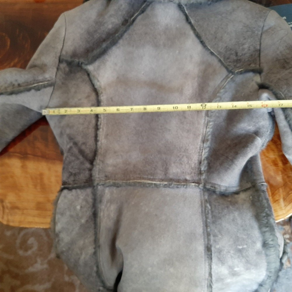 Vintage 1970's Shearling Lambs wool Women's coat Probably a size small/no size tag. Original owner, hubby bought me when we were dating in the 1970's. no size tag but appears to be a small possibly medium. 17 in across breast/ 32 in length, arm length 23.5. From non smoking home. Always kept in closet with shoulder duster on. Found spare button will be included