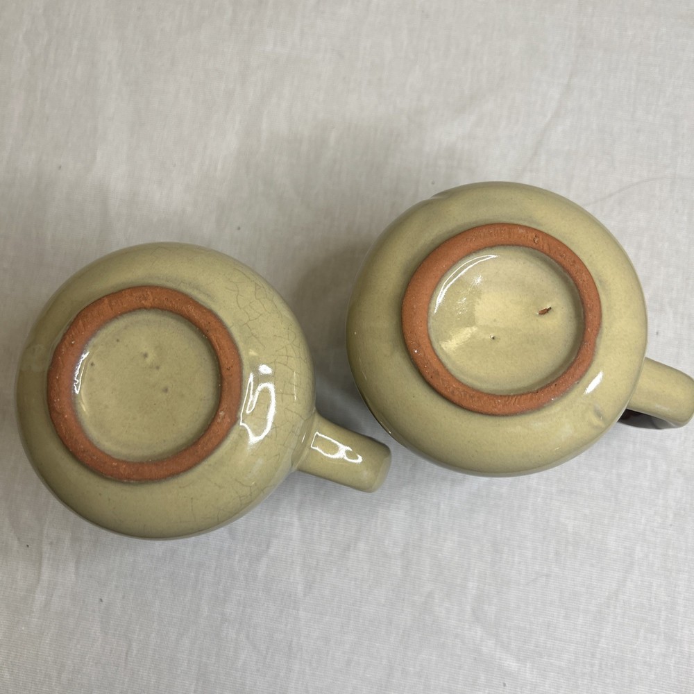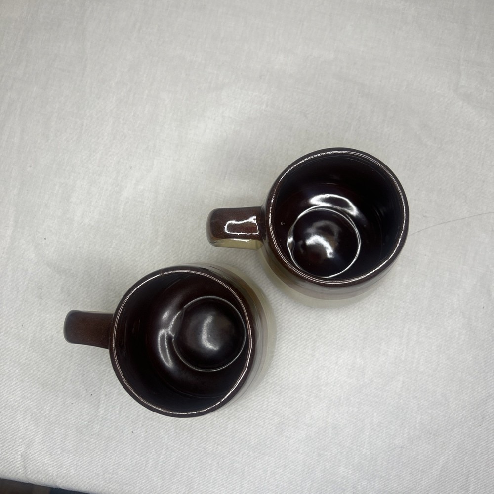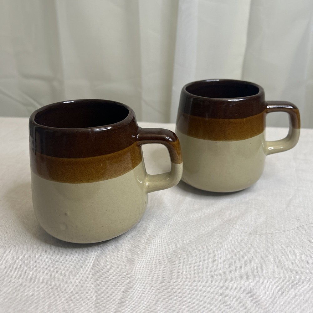 Pair of vintage 1970s Japanese stoneware mugs featuring a classic brown drip glaze and natural clay foot. Beautiful earthy tones with a simple modern form typical of mid-century Japanese export pottery. No chips or cracks.