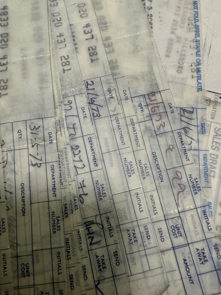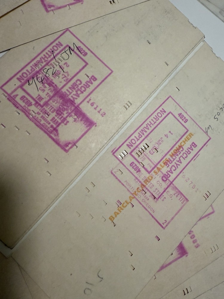Vintage 1970s UK Sales Vouchers & Receipts – Original Paper Ephemera Lot Authentic collection of original 1970s British sales vouchers and carbon copy receipts, used before electronic cash registers and POS systems. These are genuine handwritten retail and banking transaction slips, featuring Barclaycard / Barclays Centre Northampton, British Rail, and London retail locations. ✔️ Original 1973 dated documents ✔️ Carbon copy sales slips / charge vouchers ✔️ Early credit card & retail history (Barclaycard) ✔️ UK banking & transportation ephemera ✔️ Perfect for collectors, historians, designers, collage & junk journal artists 📌 DETAILS: • Era: 1970s (dated 1973) • Origin: United Kingdom • Type: Sales vouchers / charge slips / receipts • Material: Paper with carbon copies • Condition: Vintage used condition — age wear, discoloration, handwriting, stamps (see photos) • Quantity: Lot of original documents (exact count as shown) 🎯 PERFECT FOR: • Ephemera collectors • Vintage banking & retail history • Barclaycard / UK finance collectors • Junk journals, scrapbooking, collage art • Film & set decoration (1970s authenticity) 📦 Sold as a lot – items are 100% original, not reproductions.(c 12)