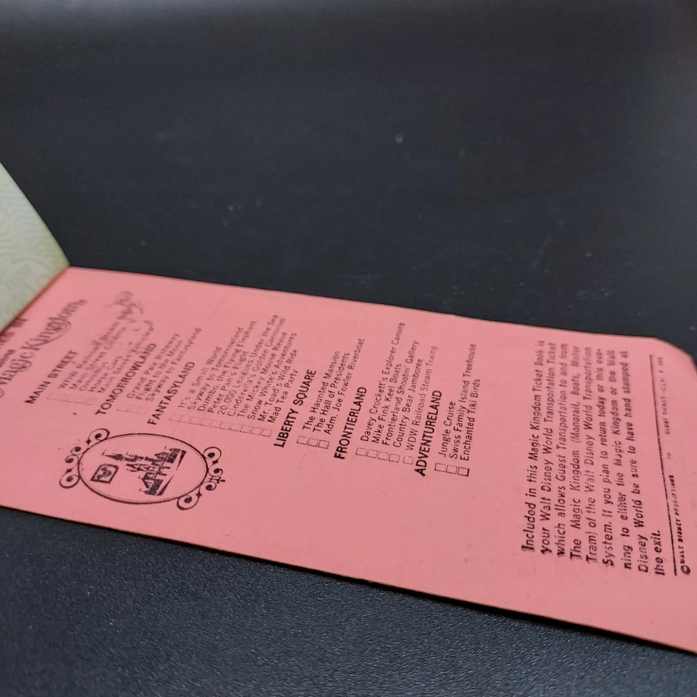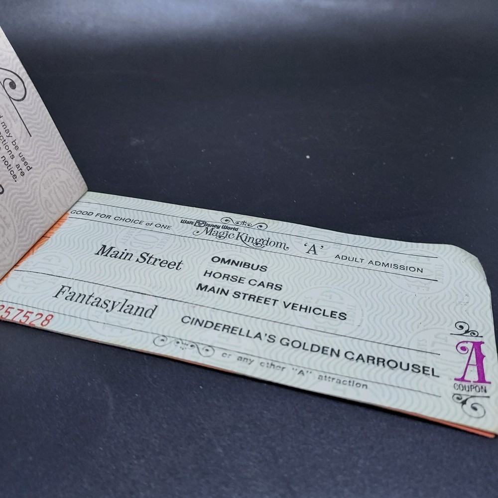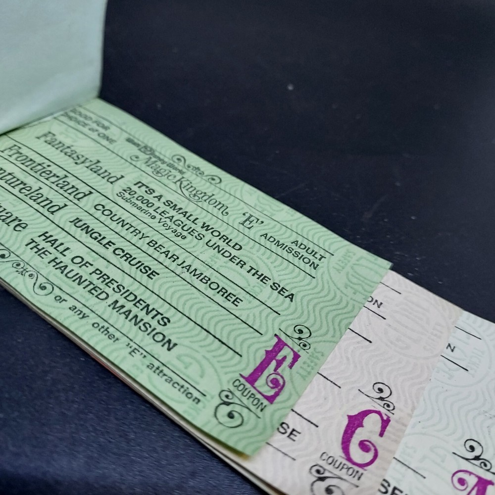 Here's a chance to own a piece of Disney history! 1970s Magic Kingdom adventure ticket booklet. Has been used,but contains 1(A),2(C) and 1 (E) ticket. Bring back memories of your visit or add to your collection.