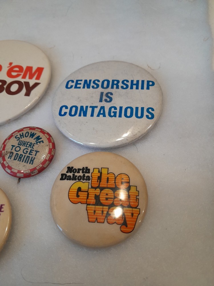 Vintage 1970s-1980s Pinback Buttons - Lot of 9 Cowboy Nukes Pollution Women