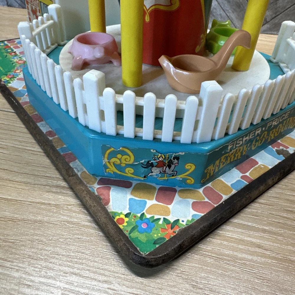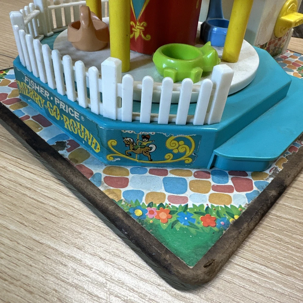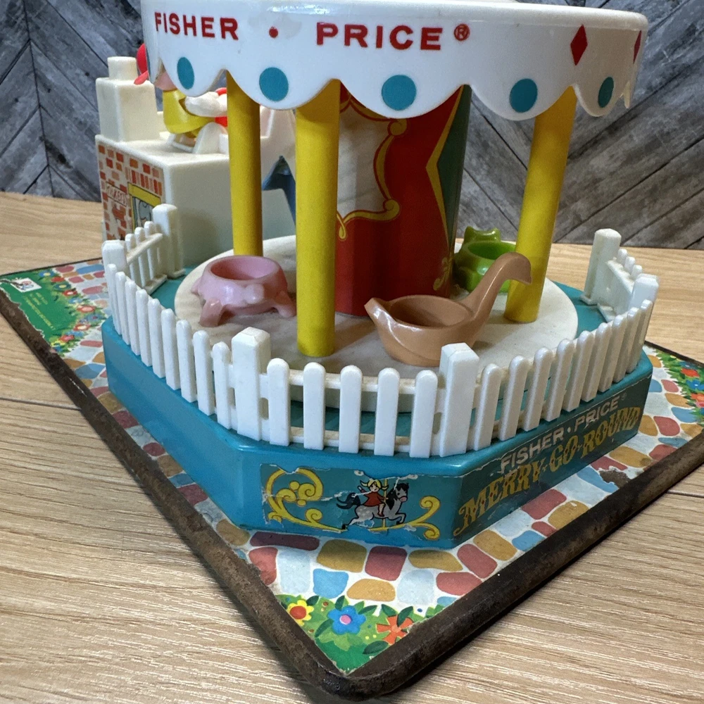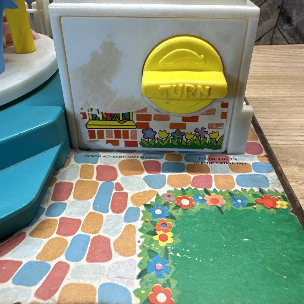 Vintage 1972 Fisher Price Little People Wind Up Musical Merry Go Round Works Device Is Dusty and signs of wear and tear are evident but the wind up and the carousel are in working condition Please see pictures