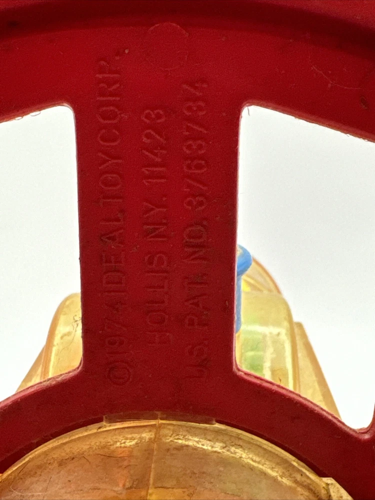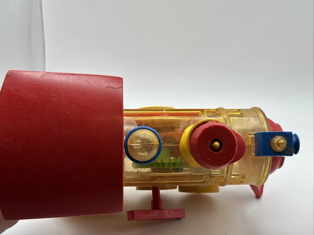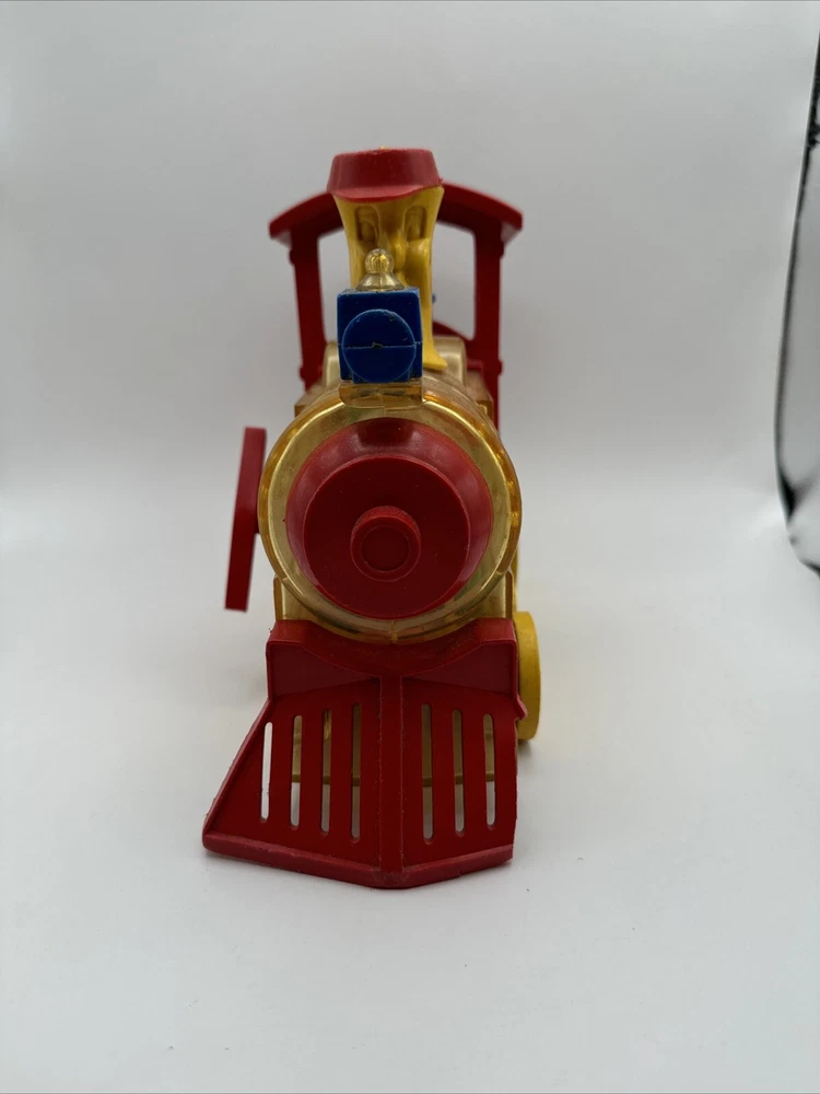 Vintage 1974 Ideal Toys Lil Toot Wind Up Whistling Train Pre-owned. Some discoloration, dirt, part of front broken as shown. Wind up works, didn't hear a "whistle". See pictures.