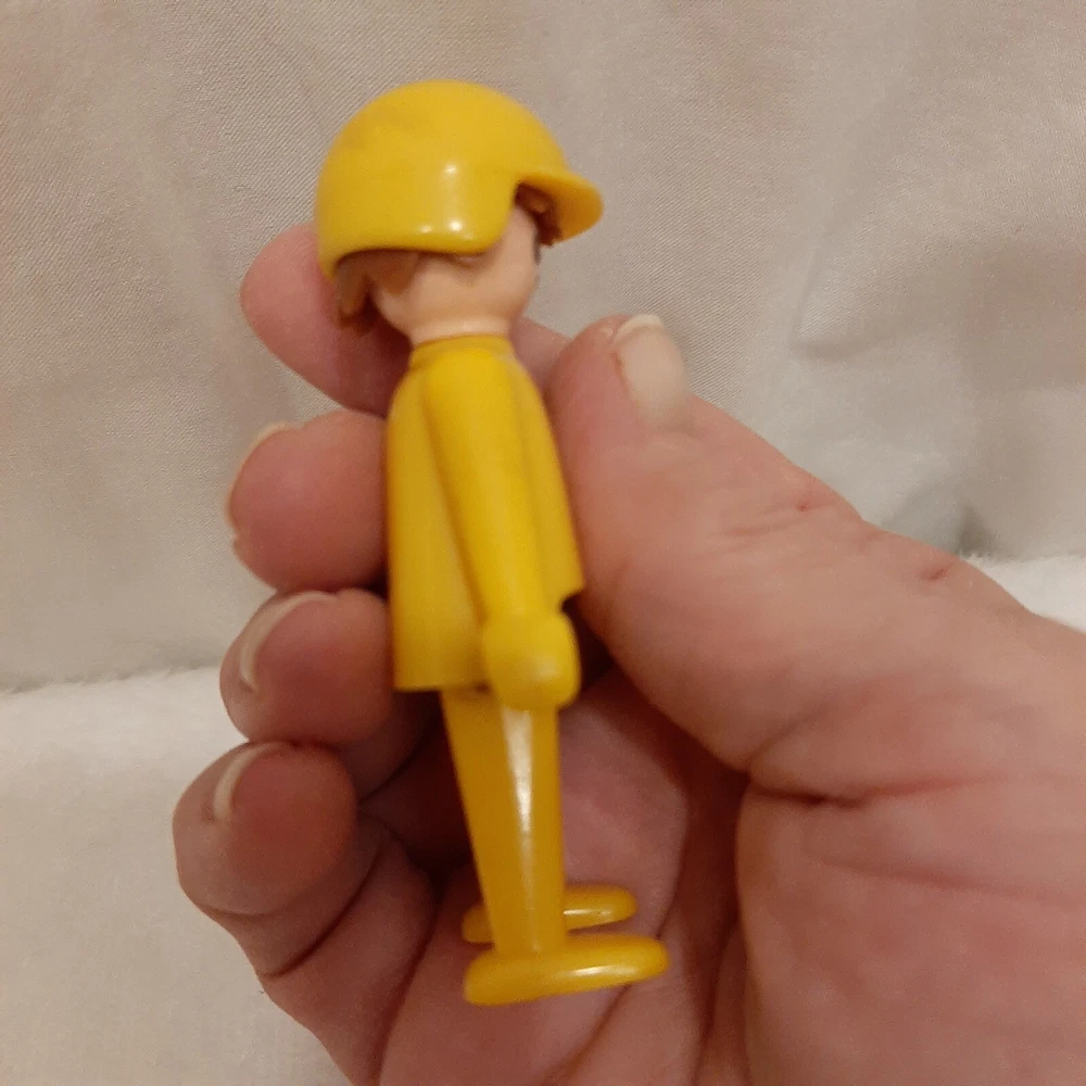 Vintage 1974 Playmobil Geobra Figurine Yellow Body With Hat/Helmet Old School In good pre-owned condition may show signs of wear from use/handling/storage/display. Please view all pics for condition/details/flaws/issues. SOLD AS IS In excellent pre-owned condition may show signs of wear from use/handling/playing/displaying/storage/age please view all photos for details. I found no flaws with this item.