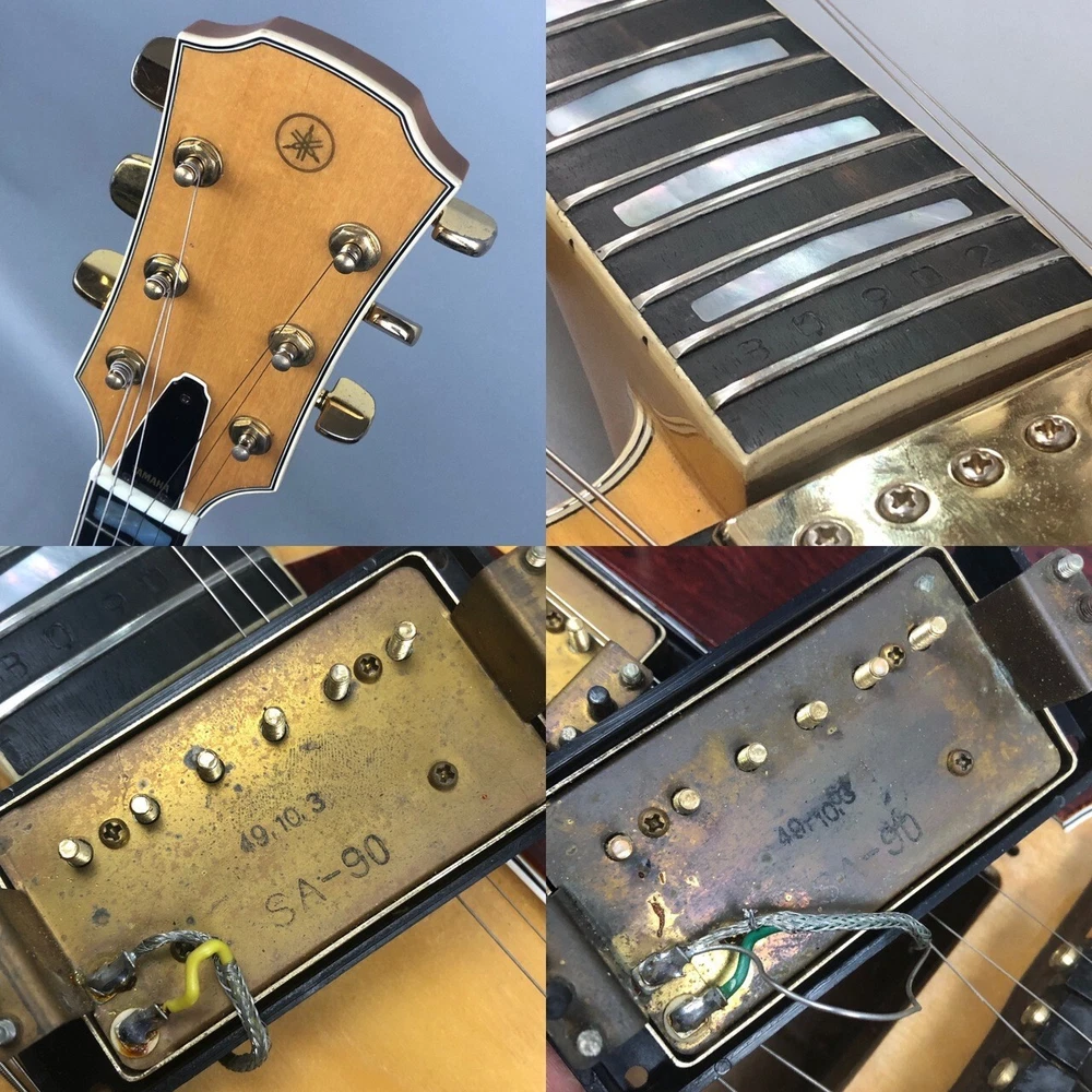 Description YAMAHA SA-90 Manufactured in 1974 YAMAHA's first semi-acoustic model! And it was the top model at the time! A Japanese vintage that is popular both domestically and internationally for its careful construction and high-quality wood materials! It is also known for being used by former Sonic Youth member Jim O'Rourke, and is traded overseas for about 250,000 to 300,000 yen. The number of good condition ones is decreasing, and this model is expected to rise in price in the future, so why not take this opportunity to get one! ! [YAMAHA's SA series is renowned for its good sound] The SA series is a popular series that demonstrates YAMAHA's tradition and technical capabilities, and has many fans. It has been a super long-seller since its introduction in 1967 and continues to be a long-seller to this day. It has a long history, following the introduction of the first SG series and YAMAHA's first electric guitar, the SG-3 (S302), in 1966, the first model in the SA series, the SA-5 (SA-50), was released in 1967. The following year, in 1968, the SA-5 was renamed the SA-50, and the SA-15, SA-30, and other models were added to the lineup, and the SA series was launched in earnest. However, the early SA series was very different from the current SA series, with a full-hollow structure without a center block and a unique body shape, giving it a so-called bizarre guitar feel. The SA-60 and SA-90, which appeared in 1973, were semi-hollow guitars equipped with a center block while retaining the unique body shape of the previous series, and the balancer that was often installed in the previous SA series was eliminated, resulting in a general 2Vol, 2Tone configuration. At that time, Yamaha's models, not only the SA series, had a unique appearance but were quite practical in content, and many of them were intermediate between the unique line up to that point and the general-purpose line that followed. After that, with a model change in 1977, the specifications finally became close to the current configuration, and the SA series since then has adopted a bi-sound system and has continued to change models while incorporating features not found in other companies. This product is a Yamaha SA-90. The body has a unique cutaway shape following the early SA series, and the guitar has 2 humbuckers, a luxurious original swing tailpiece, and a jack plate with the YAMAHA logo printed on it, giving it a sense of Yamaha's attention to detail. The controls are 2Vol, 2Tone, and 3-way selector. The bi-sound system was not yet installed in models from this period, and the guitar is similar to a typical ES-335-type semi-acoustic guitar. The pickup date for this guitar is October 3, 1974, so we determined that it was made in 1974. [Yamaha's unique approach and full semi-acoustic sound] The body is made of birch top and beech sides and back. The neck is made of beautiful bird's eye maple, and the fingerboard is made of black ebony. It has a 22-fret, set neck with a scale of approximately 628 mm. The center block is made of katsura, which gives it a rich airiness that is typical of semi-acoustic guitars, and a cored sound that leaves a lasting sound image. The knobs, bridge, and tailpiece are also sprinkled with original Yamaha elements, and the attention to detail is evident. The position marks are decorated with pearl block inlays, which, combined with the dark ebony, give it a luxurious look. The pickup is a covered humbucker. The mellow sound of the front pickup with a sense of air and the bright sound of the rear pickup are well balanced, making it a sound that can be used in a variety of genres. The control is a 2-volume, 2-tone, 3-way toggle switch. After about 50 years, it has a very attractive sound. The neck condition is almost flat. There is a crack in the clear layer near the left cutaway. There are no other noticeable scratches and it is in good condition. The string height is 12F 6th string approx. 2.1mm, 1st string approx. 1.8mm. The strings used are .010-.046. The truss rod has plenty of room to tighten and loosen. About 70% of the frets remain, and there are no low spots. If you pick hard, the 6th and 5th strings will vibrate slightly, but this should not cause any problems with normal use. Includes a hard case. [SPEC] Body material: birch + beech, katsura center block Neck material: maple Neck shape: C Neck curvature: none Fingerboard material: ebony (22F) String height: treble-bass: 1.8-2.1 Number of frets remaining: 7 Inlay: block Nut (width): approx. 42mm Pegs: original Scale: approx. 628mm Bridge: original String gauge: .010-.046 Pickguard: tortoiseshell Pickups: original covered humbucking Switch: 3-way toggle switch Controls: 2vol 2tone Rod clearance: I tightened it a little when adjusting it, but there is clearance to tighten and loosen it Weight: 3.88 Accessories: hard case Serial number: 30902 Shipping Shipping by Fedex or EMS (international express mail service, with Tracking and Insurance, handling cost). Fedex takes 1 week, EMS takes 1-2 weeks. We will ship your item within 5 business days with carefully packed. Returns Money back guarantee within 30 days. We offer 30 days money back guarantee for defective products. The buyer must pay for returning it back to us. When there were defects in a item, please contact us. About Us If you have any problem, please contact us. Your satisfaction is important to us. We have results that I sold of tens of thousands of by Internet sale. We have pride ourselves in the Quality of items we offer. All our items has been checked by technician. As every seller dealing with pre-owned branded items in Japan we have as well license from local government to offer services of this kind. We are officially registered as legal business and we have to comply with all rules and regulations including tax requirements from the Japanese government. International Buyers - Please Note: Import duties, taxes and charges are not included in the item price or shipping charg