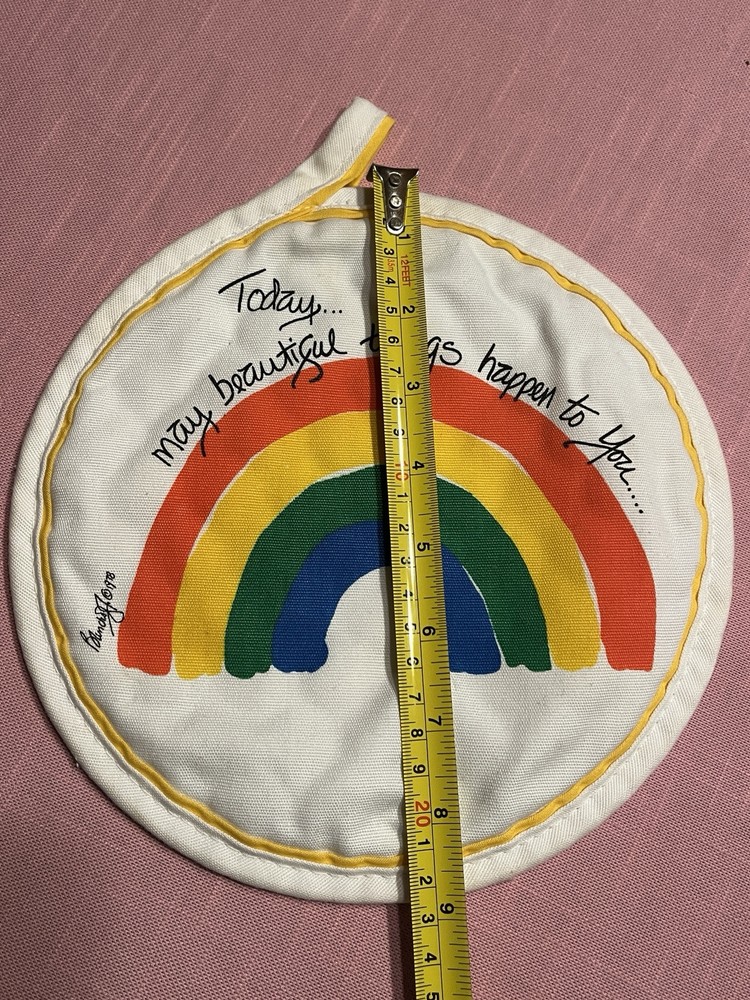 Department:AdultsColor:MulticolorTheme:RainbowNumber of Items in Set:1Care Instructions:Machine Washable up to 100°FStyle:Vintage/RetroType:Oven MittCharacter:RainbowCharacter Family:RainbowPattern:QuiltedBrand:BancroftOccasion:All OccasionMaterial:CottonCountry/Region of Manufacture:United States