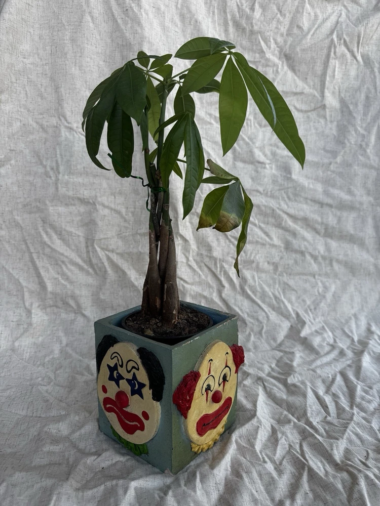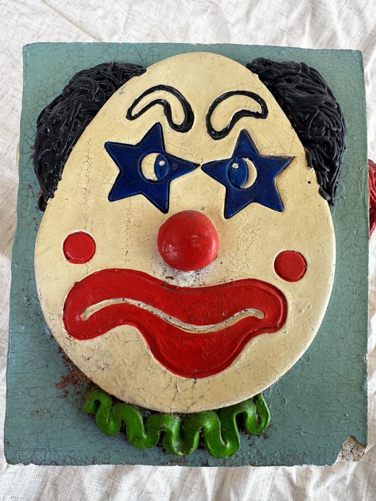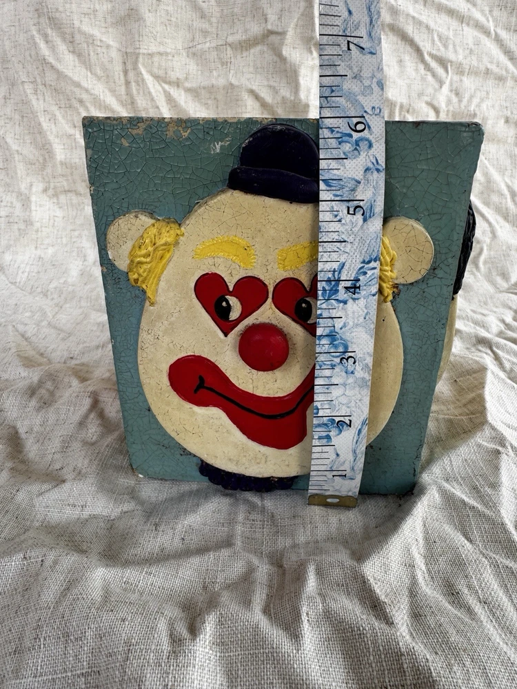 This vintage clown planter is a unique collectible from 1979, featuring a multicolor design with hand-painted details. Handmade and signed by Randi Jameson in the United States, this item is part of a clown-themed collection, perfect for all occasions. This original piece captures the whimsical theme of a circus, making it a charming addition for boys, girls, and adults alike who appreciate nostalgic decor from the 1970s. Please see all photos for details/imperfections.
