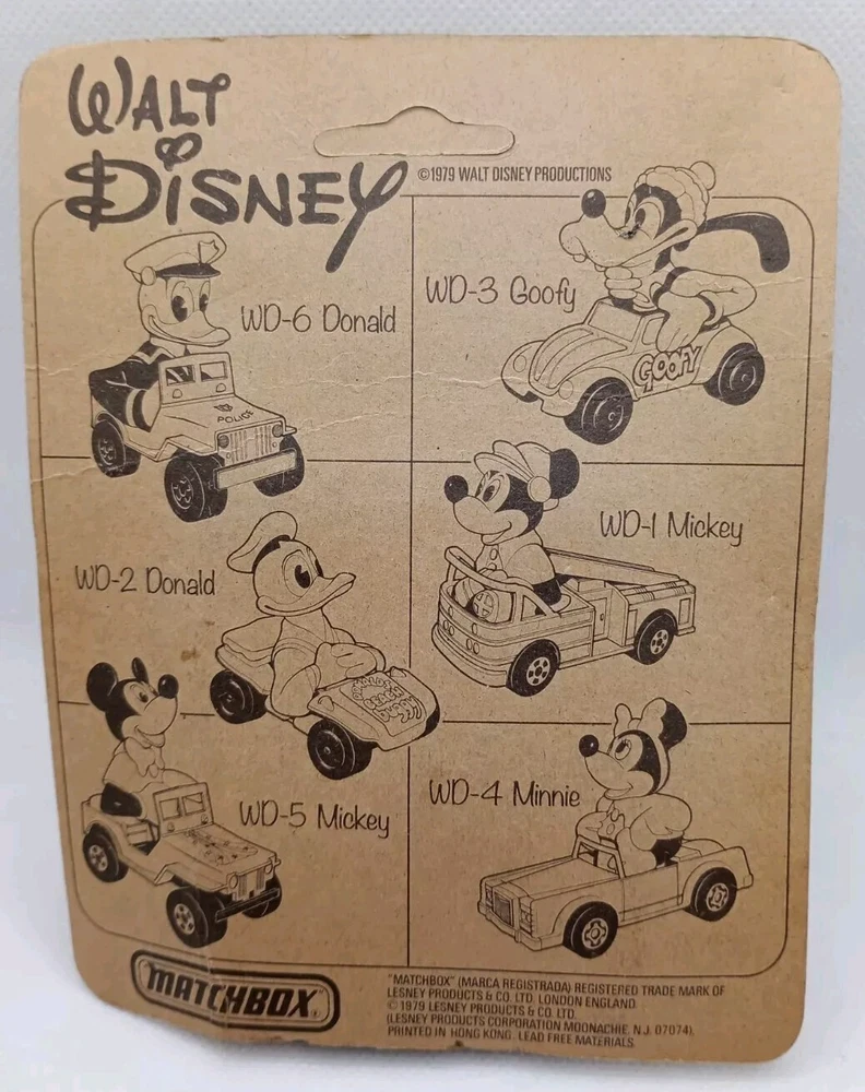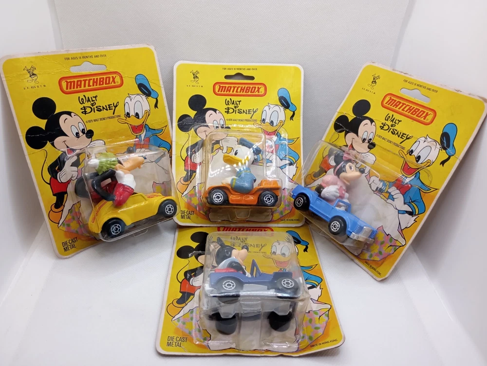 Vintage 1979 Matchbox Walt Disney Die Cast Cars & Characters X4 Unopened. Comprising of - Mickey Mouse, Minnie Mouse, Donald Duck and Goofy. See pictures for detail and condition.