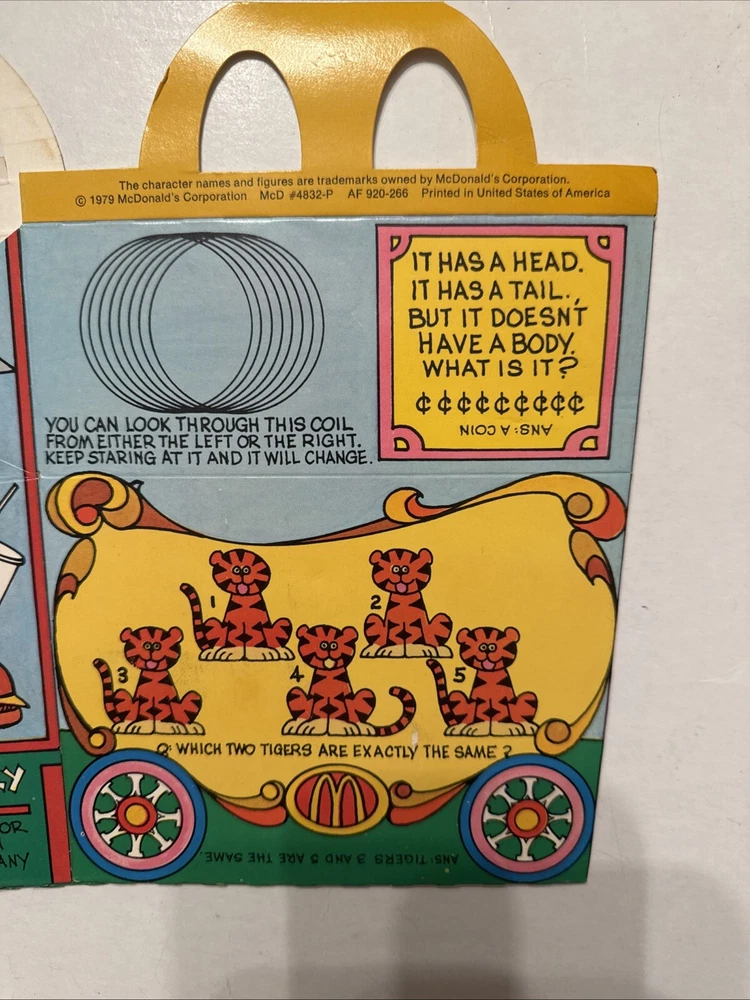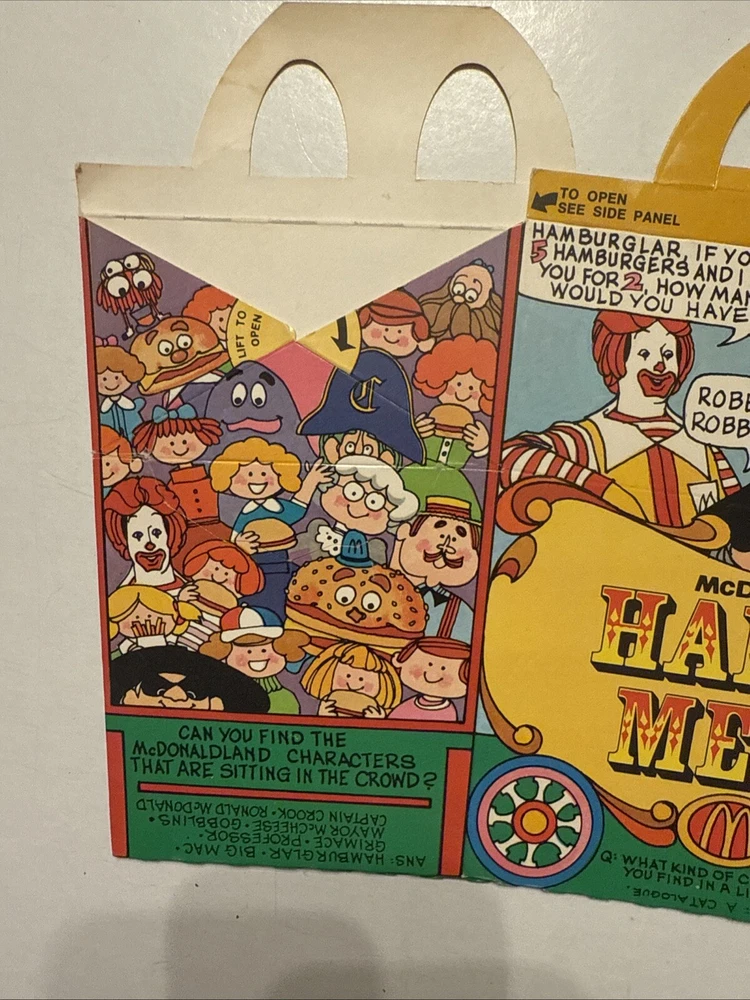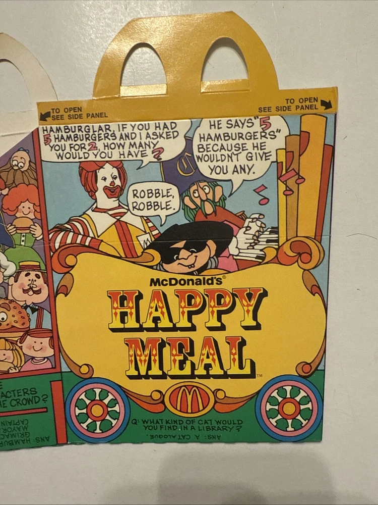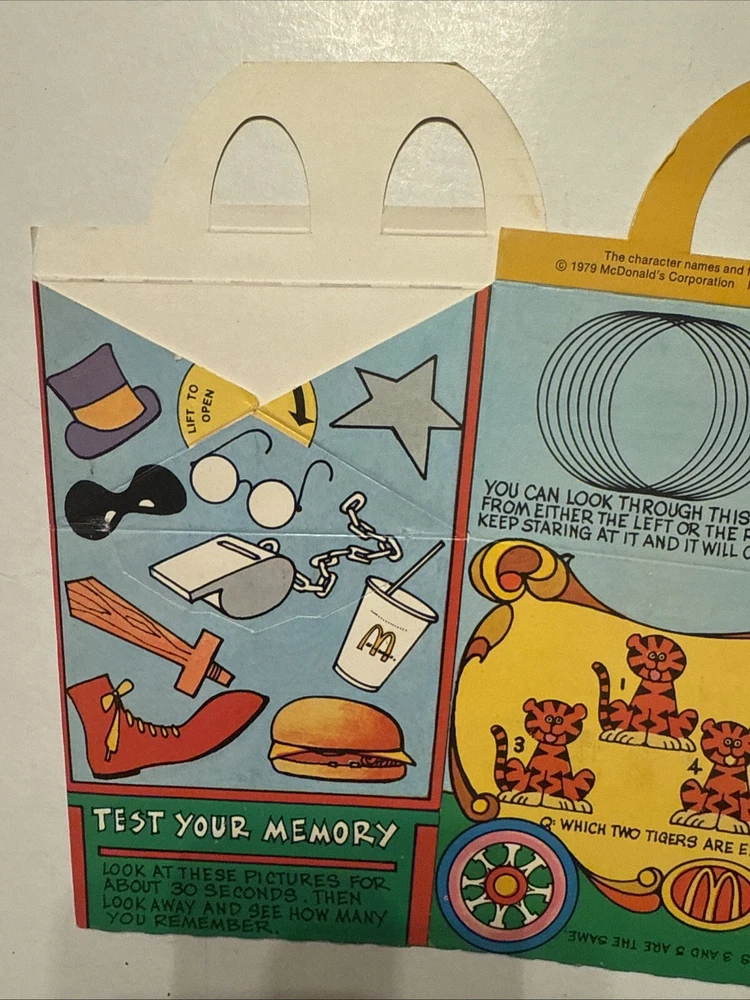 New please see pictures This vintage 1979 McDonald's 1st Happy Meal Box Circus Wagon is a must-have for any collector of McDonald's memorabilia. The box is an original piece and features the iconic McDonald's brand. It is a great addition to any collection of advertising or restaurant and fast food items. The box is in excellent condition and has been well-preserved over the years. It is a unique and rare item that will make a great display piece in any home or office. Don't miss out on the opportunity to own this piece of McDonald's history.