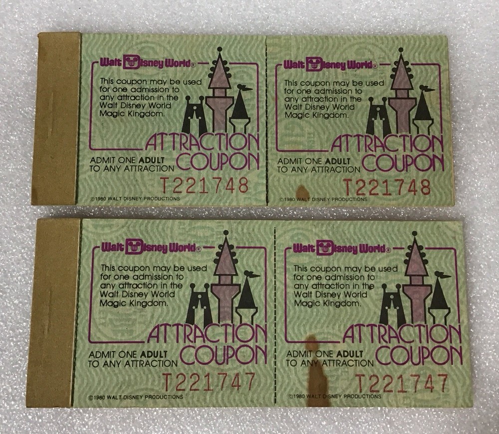 Vintage Walt Disney World Coupon Ticket Magic Key 1979 1980 Lot Of 4 Items See all photos for condition
