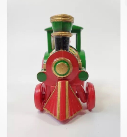 This vintage Hallmark Christmas ornament features Santa Claus on a train, titled "Santa's Travels". Made in Hong Kong in the 1980s, this medium-sized ornament is perfect for any collector or holiday enthusiast. The ornament is made of plastic and weighs 2.6 ounces, with dimensions of 2 inches in length, 3 inches in height, and 4 inches in width. The colorful and decorative ornament is an original and licensed reproduction, with a train shape and a Santa Claus character. It comes as a set including one ornament, and is perfect for the Christmas occasion. Add this unique piece to your collection of ornaments and bring joy to your home during the holiday season.