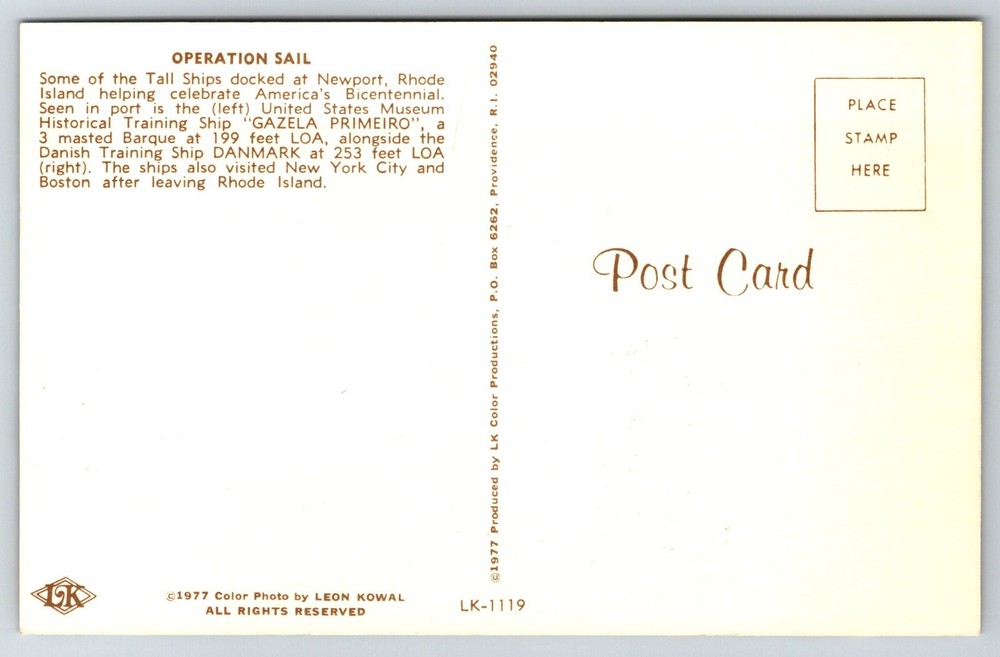 You are buying a Vintage " C1980 Operation Sail Training Ship Gazela Primeiro Newport RI Postcard . " Card Size is approx. 3.5" X 5.5". In stock, Usually Ships Within 24 hours! 100% Satisfaction Guaranteed! If you have any problems with this purchase, please contact me before leaving feedback, and I will do my absolute best to make you satisfied. Check all my other listings in my store. RETIREDWITHBOOKS. Thank you!