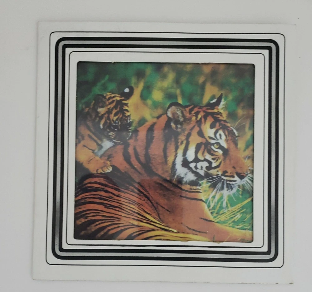 Vintage 1980's Carnival Fair Game Prize Glass Tile -Bengal Tigers -RARE.