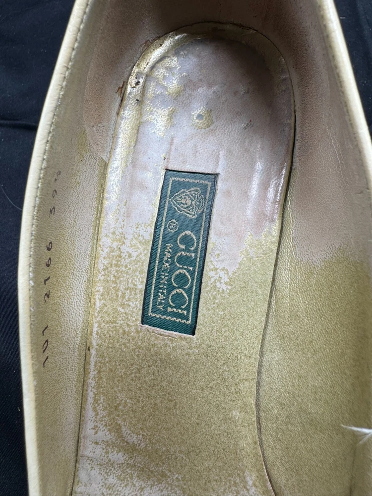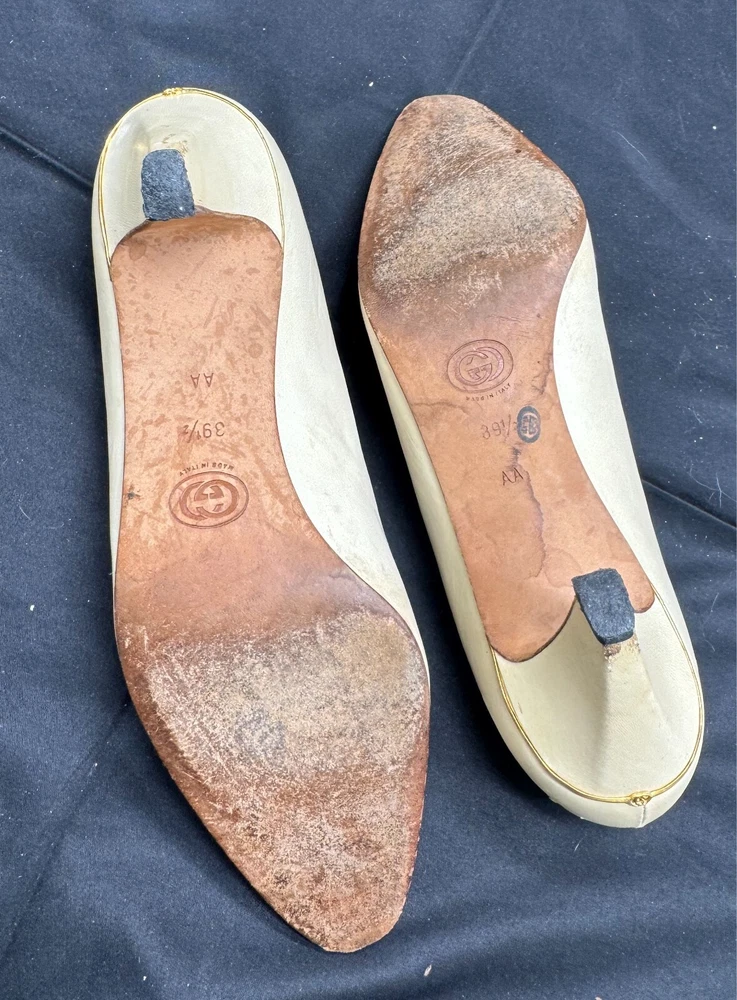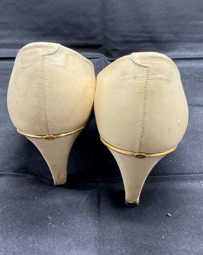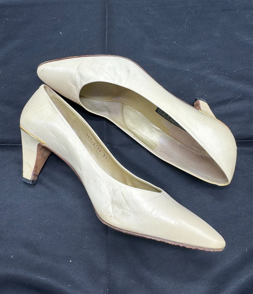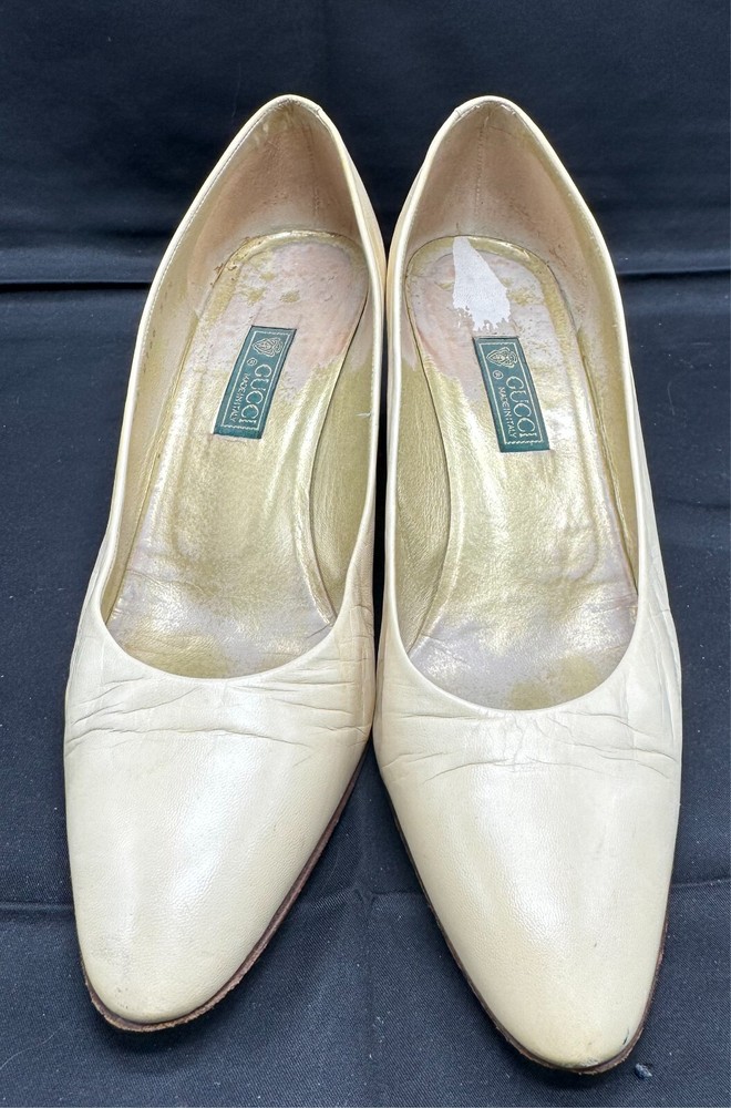 Country/Region of Manufacture: Italy Vintage: Yes Department: Women Brand: Gucci Style: Pump EU Shoe Size: 39.5 Shoe Width: AA Heel Style: Stiletto Type: Heel US Shoe Size: 8.5 Upper Material: Leather Heel Height: High (3-3.9 in) Color: Ivory