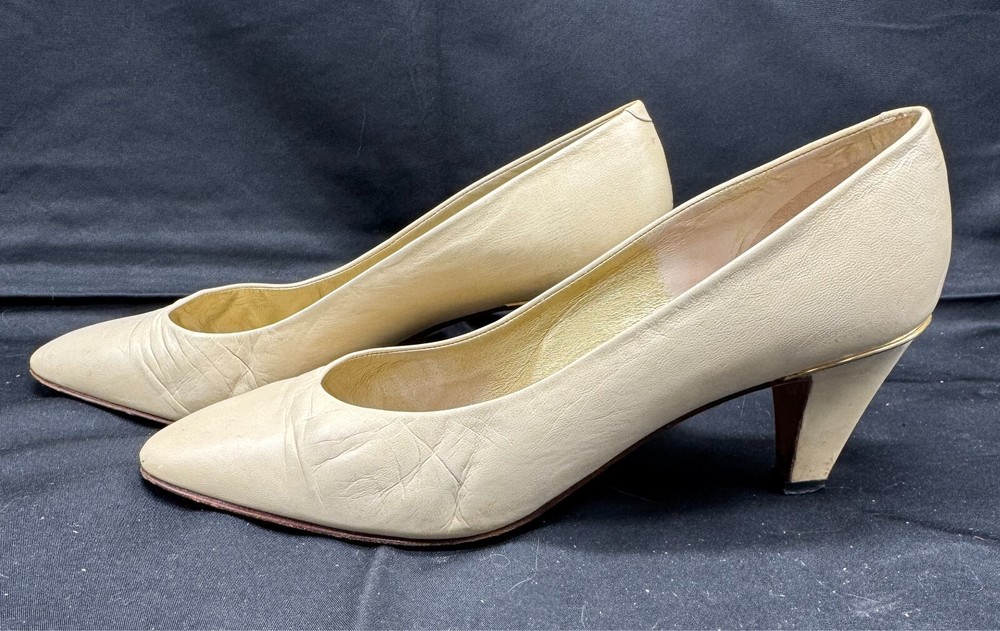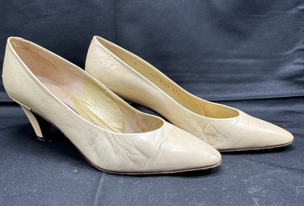 Vintage 1980s GUCCI Ivory Leather Stiletto Pumps Size 39.5 AA Italy