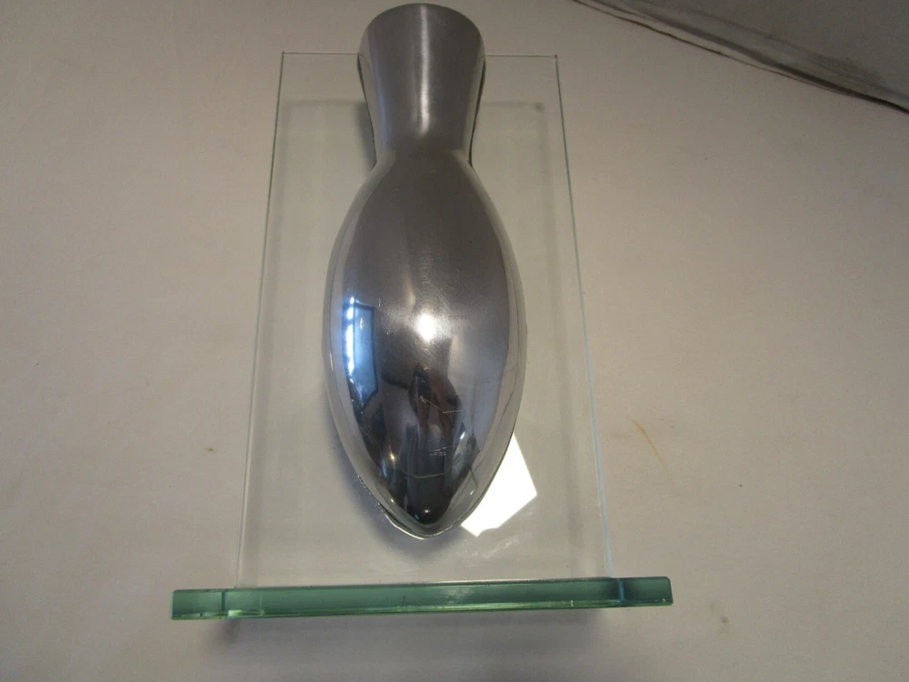 Description- 6/14/11/10 book # 426 AWESOME piece referred to as a "floating" vase because the aluminum vase appears to be suspended in air the way that it is mounted in the glass frame Stand. This is a pretty unique piece and believe that it was probably produced by BADASH, however there is no mark or label. Perfect for dry flowers – it is not good for water It is 9.5” tall x 5.5” wide and 3.75” deep Unpacked weighs 2.25 pounds- Preowned used condition-clean, no cracks chip top corner and rough bottom edge, see last pictures. Please zoom and view all pictures for more details as they are part of the description. I DO MY BEST TO DESCRIBE EVERY LISTING BUT I AM NOT AN EXPERT AND ITEMS ARE SOLD “AS IS”. My idea of great/good may be different than yours, so EXAMINE PHOTOS CAREFULLY since they are binding and a supplement to the word description in case I should miss something. If I fail to mention something, it does not qualify as “item not as described” if it shows in my pictures. EACH PHOTO IS WORTH A THOUSAND WORDS AND THEY ARE OF THE EXACT ITEM YOU WILL RECEIVE. RETURN POLICY: Returns are acceptable ONLY if the item is defective, or grossly misrepresented. THIS MEANS I DO NOT ACCEPT RETURNS for FIT, SIZING, COLOR ISSUES, OR BUYER'S REMORSE. Please zoom and view ALL pictures for more details as they are part of the description. Email me with any questions you may have. Please note: Buyer pays ALL return shipping and fees. · FEEDBACK I do not leave feedback until the end of a transaction. The transaction is considered over once I receive feedback from you confirming that you have received it and expressed satisfaction with it. If you are unsatisfied with your purchase, please contact me before leaving a neutral or negative feedback- so I can fix the issues. Postage is fully tracked ·