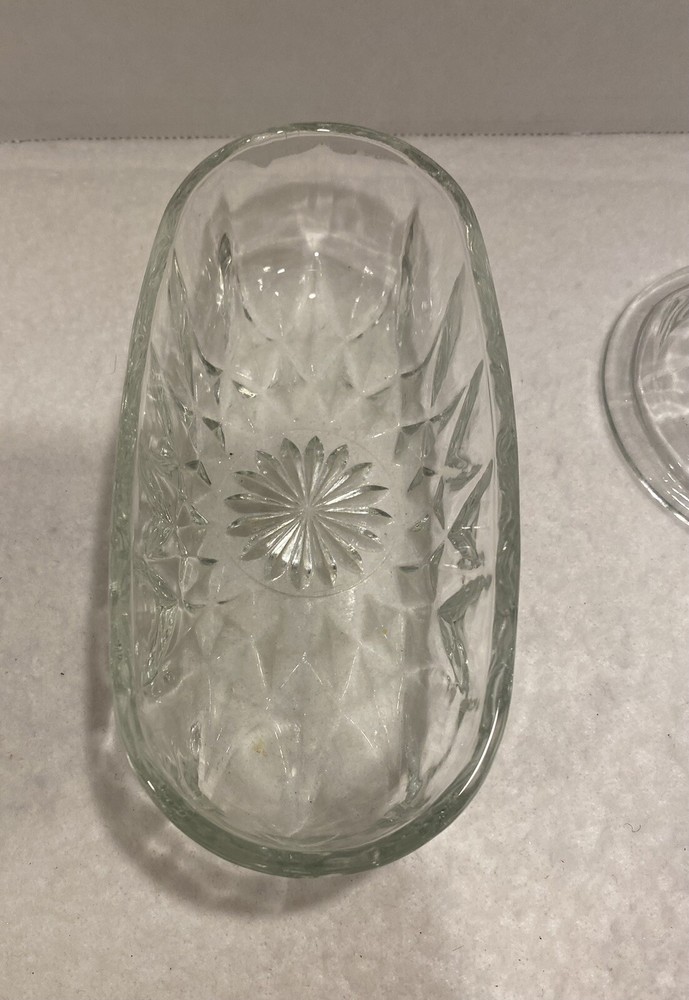 $ 17.43Elegant Cut Glass Crystal Round Starburst Cheese Dish 6.5 x 5 Inches 2-Piece Set