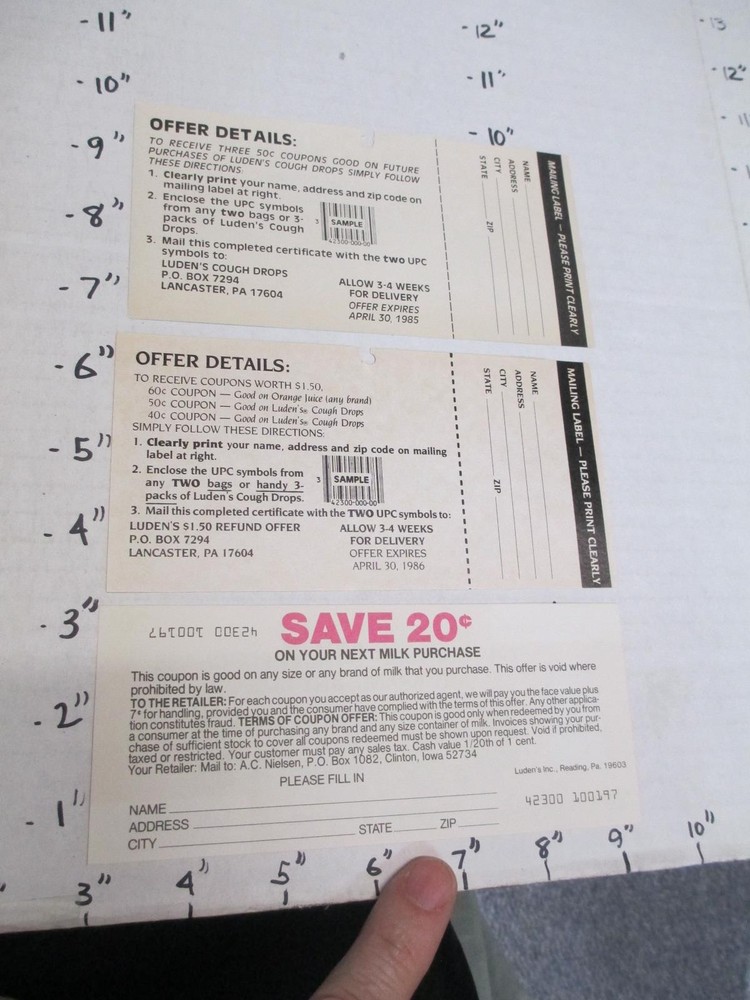 ITEM DESCRIPTION LUDEN's candy bar 1980s store display coupon 5th Avenue cherry cough drops $18.00 listing is for all 3, excellent condition, from a former Luden's salesman see inch marks in photos for size OFFERS ---I list 20,000+ items a month on EBAY. It is easier to put Best Offer on everything but because I lose 15% to EBAY fees no matter what, I may not be willing to take offers on everything I have listed. COMBINED SHIPPING ? YES...I can do this but ONLY If you follow the below instructions. To be clear, "combined shipping" is when you buy 3 items, for example, each with a shipping charge of $8, but since I can ship all 3 in the same box, you get charged $10-12 instead of $24. I cannot "combine shipping" after you have already paid. 1) DO NOT USE the cel phone app ! If you do, EBAY will force immediate payment and charge you full shipping on each item. I will not refund your money if this happens. 2) You must log into EBAY with a browser (Chrome, Safari etc) on your phone, computer or laptop to avoid this. 3) Put all items in your Cart and then, while in your Cart, click the "Request Total" link. "Request Total" will not be visible if you click "Checkout" under your Cart icon. You must click "View Cart" under your Cart icon. The URL should say cart.ebay.com Because EBAY and PAYPAL have made partial refunds so complicated, I will no longer be refunding $ if you do not follow these instructions. MY PHOTOS - If more than 1 item is shown in a photo--- then items are in SEPARATE listings unless otherwise stated ! Read description! PAYMENT-General Info PAYMENTS- USA Various payment options will show during checkout. Contact me if you need another payment option. EBAY is charging sales tax. Sellers have no control over that. PAYMENT-FOREIGN ORDERS Various payment options will show during checkout. Contact me if you need another payment option. SHIPPING COST ? .... see "SHIPPING COSTS : Shipping-Foreign" (shown below). CUSTOMS CHARGES -- your country may charge you customs fees before you can receive the package. This is not my responsibility NOR is it part of my shipping charge. It is a fee charged by the country you live in. SHIPPING COSTS SHIPPING-USA FIXED SHIPPING RATE = actual shipping cost & insurance & small handling fee ($2 or less). West Coast may be significantly higher on larger or heavier items. FYI here is what the US Post Office currently charges : SHIPPING-FOREIGN For UK, Canada,and Australia , PLEASE check with me first to make sure shipping charges EBAY has listed are correct! In the last few years, there have been HUGE increases in shipping cost outside the USA. The shipping cost listed is usually for FIRST CLASS shipping. The USPS will only insure Priority and Express shipments. ******There is a $2-$5 handling fee for foreign orders. ========================================================= Offered by DAVID WELCH ------ author of COLLECTING PEZ 1995 and Pictorial Guide to Plastic Candy Dispensers 1991. I have been a full time antique and collectibles dealer since 1989 and have been collecting since the early 1970s. I have been on EBAY since 1997. If you have questions about any negatives I have received, feel free to ask. THANK YOU TO THE PATIENT AND REALISTIC PEOPLE WHO MAKE 98% of EBAY DEALINGS A PLEASURE. I have been on EBAY since 1997 and this company's ability to make simple things needlessly difficult is unmatched by anything I have experienced elsewhere. ===================================================================== Powered by SixBit's eCommerce Solution