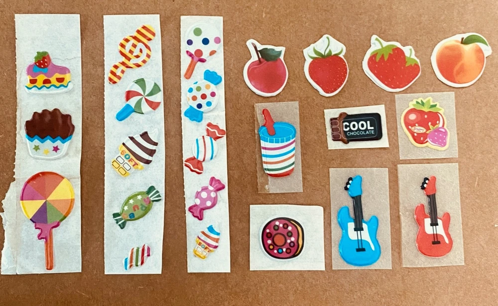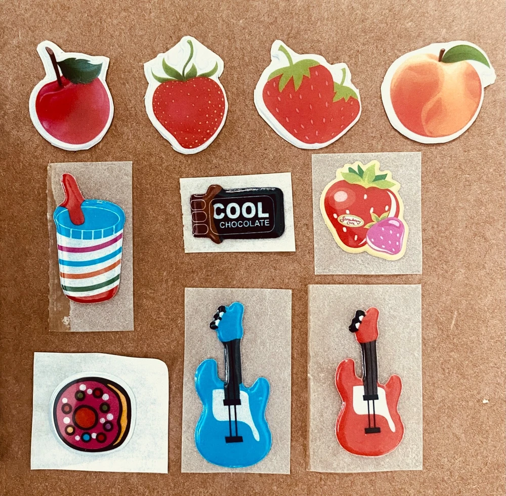 Vintage 1980s Puffy Scratch N Sniff Candy Fruit Guitar Stickers Vinyl Stick-On