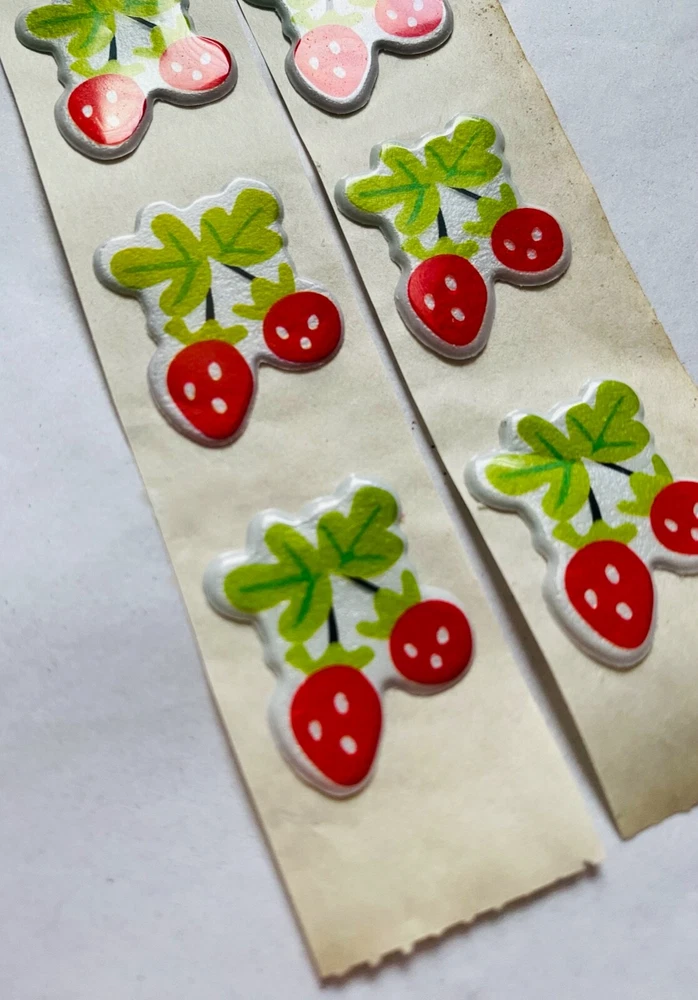 Vintage Set of 6 Count ~ 1980s Puffy Scratch N Sniff Long Stem Strawberry Stickers Vinyl Stick-Ons With Smell -Scent is not guaranteed due to age, but I am still able to smell every sticker. :) Each sticker is carefully unstucked and ready for use, making it easy to create unique and personalized embellishments for your scrapbooking needs. This set is a must-have for any collector or crafter, and is sure to bring a smile to your face. The stickers I am selling are from my Grandmother & Great Grandmother's personal sticker collection. Most are from over 30/40+ years ago. They have been in photo albums, boxes and plastic bags. These stickers are very Rare & in great condition. COLOR MAY VARY FROM DIFFERENT SCREENS PLEASE ASK ANY QUESTIONS YOU MAY HAVE ABOUT THE COLORING OF THIS ITEM BEFORE COMMITTING TO PURCHASING IT PLEASE. Check out my other collections! Thank you.