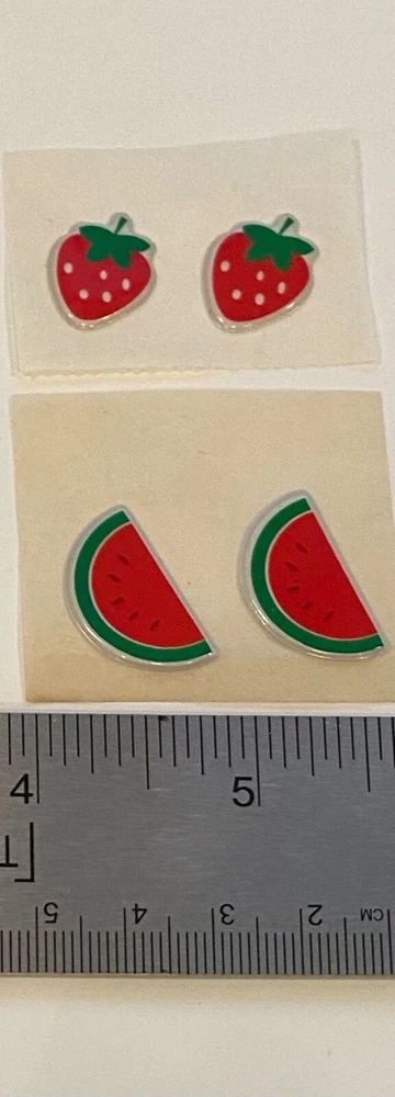 Vintage 1980s Puffy Fruit Scratch N Sniff Fruit Stickers Vinyl Stick-Ons With Smell 9 Loose Sheets show some wear. 2- Duo Strawberries 1- Pink Cherries 2 - Strawberries 2 -Watermelon Slices 2 - Duo Strawberries on Stem -Scent is not guaranteed due to age, but I am still able to smell every sticker. :) COLOR MAY VARY FROM DIFFERENT SCREENS PLEASE ASK ANY QUESTIONS YOU MAY HAVE ABOUT THE COLORING OF THIS ITEM BEFORE COMMITTING TO PURCHASING IT PLEASE. Check out my other collections! Thank you.