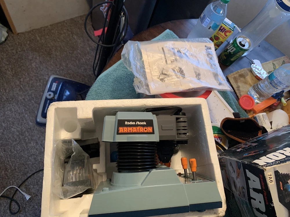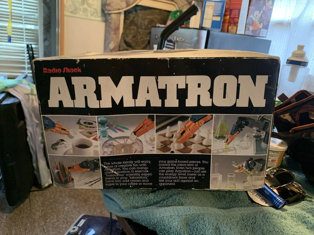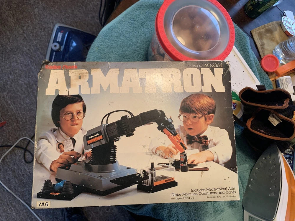 Vintage 1980s Radio Shack Armatron Robotic Arm 60-2364 w/ Box Works Tested Comes brand new box is a little damaged but it has never been used besides testing been sitting in my grandpas basement for 20+ years nice old toy good throwback comes with everything!!