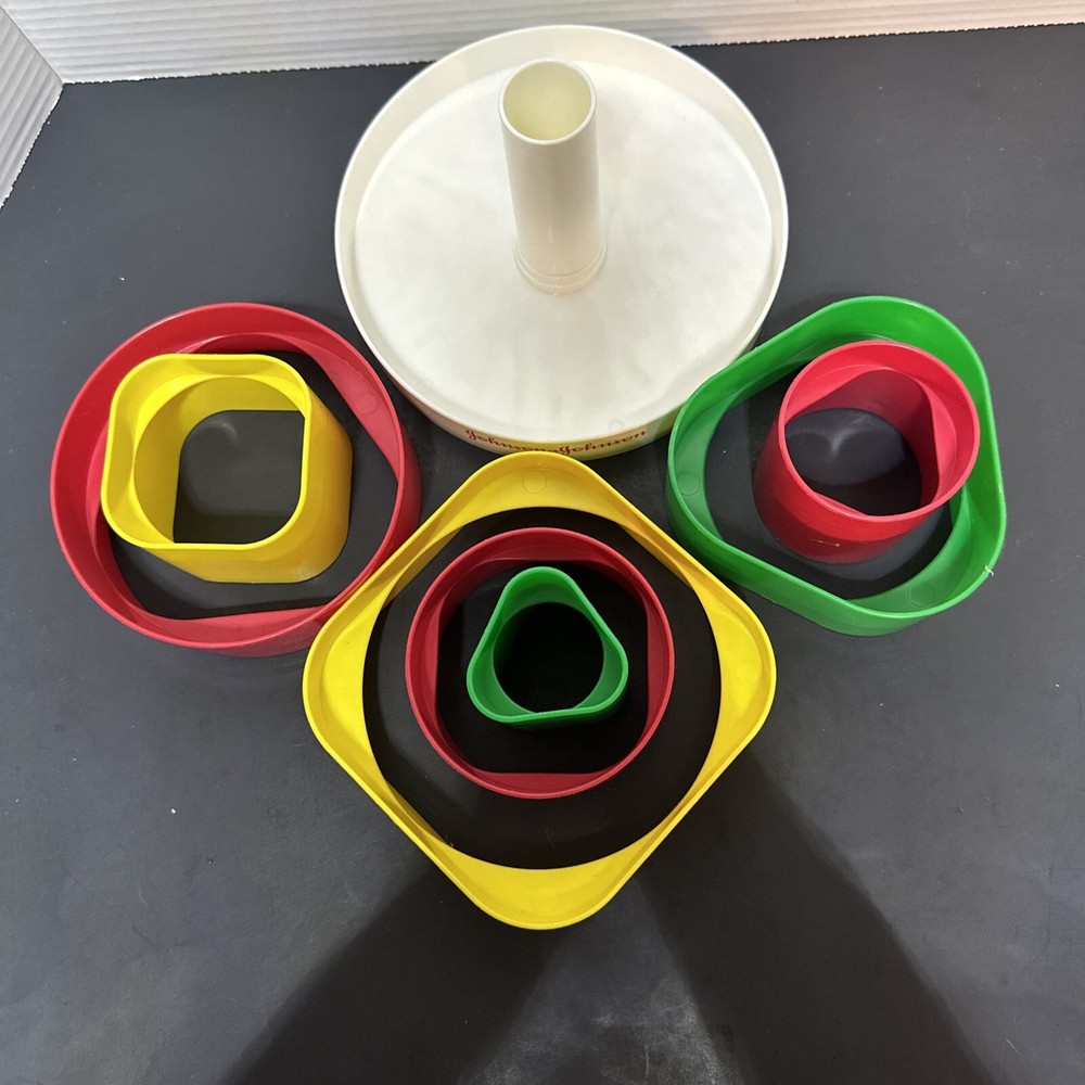 Vintage 1981 Johnson and Johnson Playpath Fitting Forms Child Development Toy stack 100% complete. Please see all pictures for condition as for it is part of the description. Due to lighting, colors can vary slightly from pictures. ***Please take note*** Flat rate shipping is for the 48 inland states only! if you are purchasing and shipping to Alaska, Hawaii or Puerto Rico, please contact me before purchasing to get a shipping rate. Thank you. Thank you for shopping!