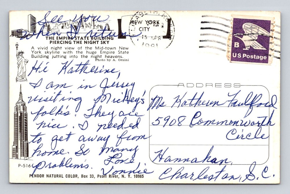 Vintage 1981 NYC Empire State Building Night Sky Postcard