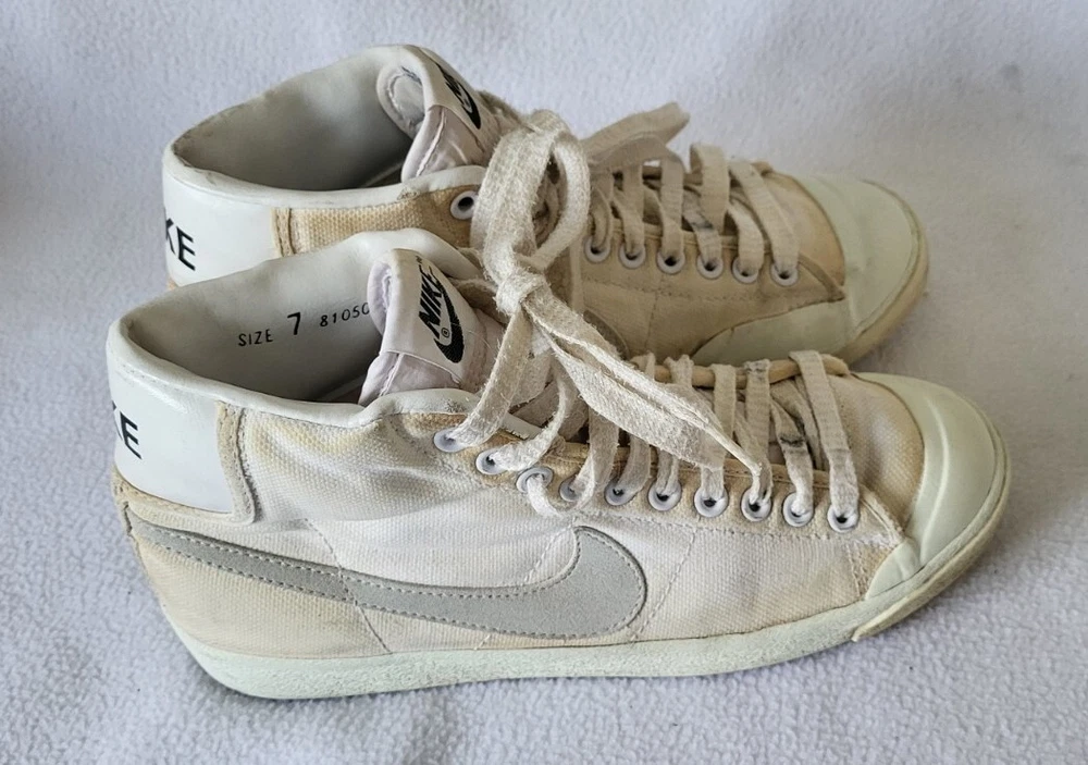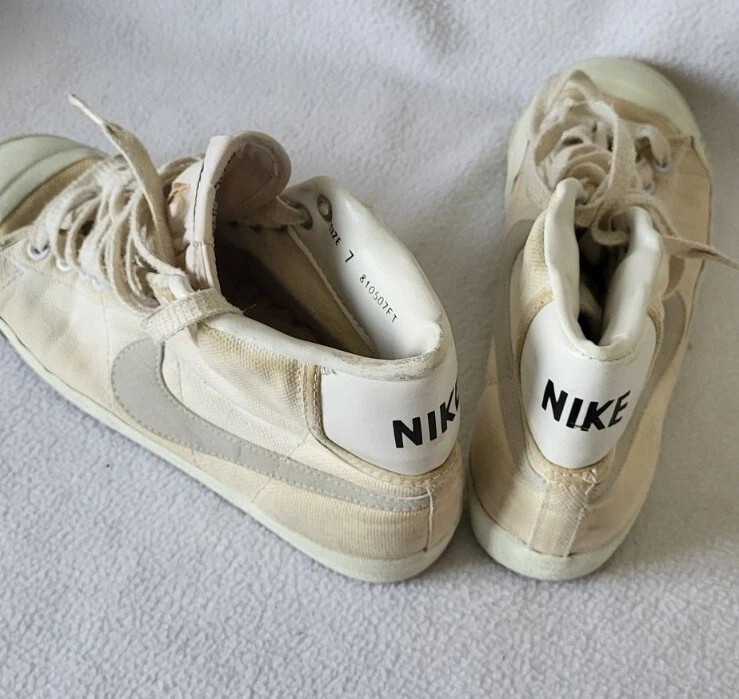 Vintage 1981 Nike All Court 810507FT Men's Sneaker Shoes Size 7. Cracking at some point midsole and insoles! I would NOT recommend to be worn as they're in that condition because of age! They seem to have the original insoles and laces as shown on pics Perfect for a business display or as you please! They DO NOT have the original box! At the time of shipping they will be packed in a double box! If you have any questions please feel free to do so! Thanks for looking at my other stuff Please follow 🙏