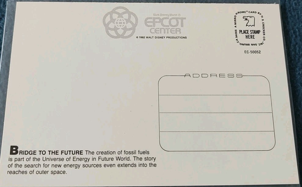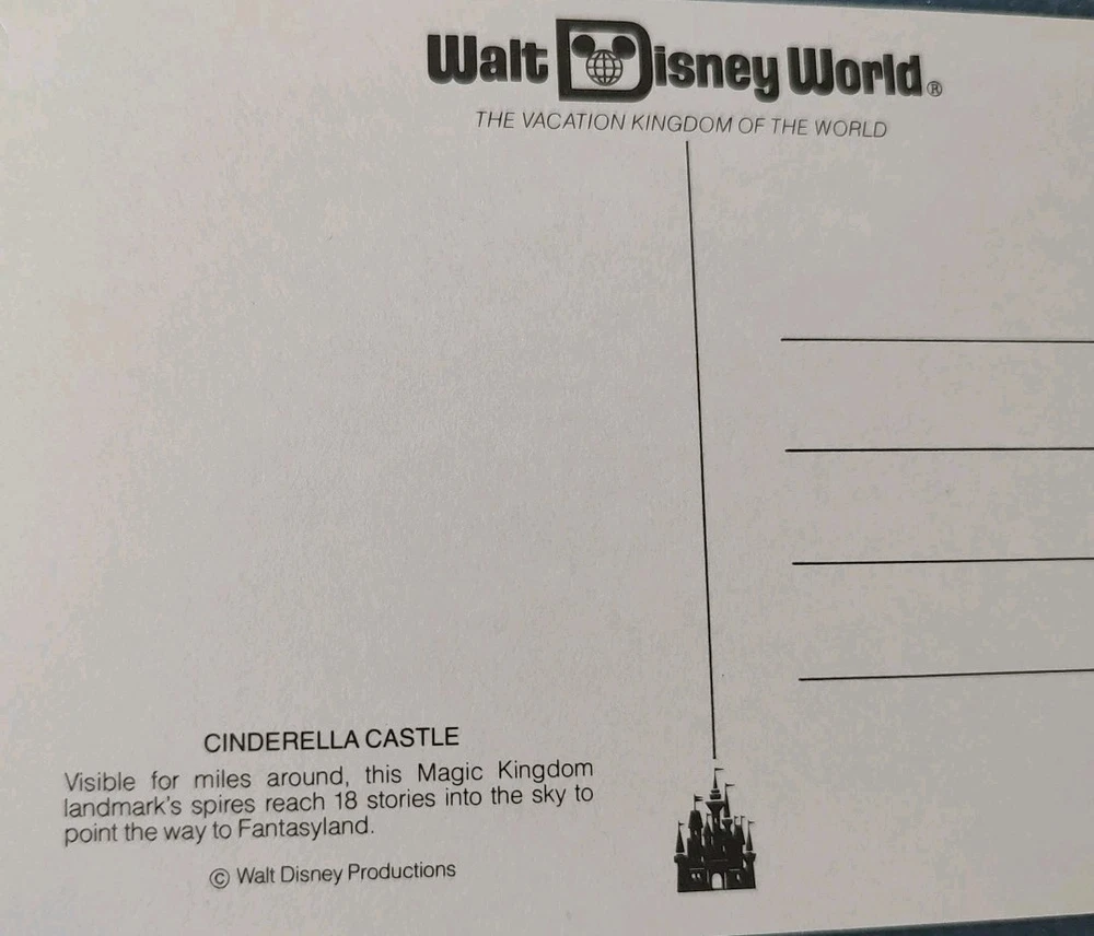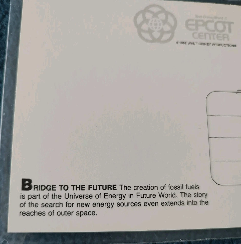 Capture the magic of Disney with this vintage lot of 2 postcards from 1982, featuring the iconic Energy Pavillion in Epcot center and the Walt Disney World princess Castle. Produced by Walt Disney productions, these real photo postcards (RPPC) are original and unposted, making them a collector's dream. The postcards measure 6 x 4 inches and are in continental size. The postcards are made of cardboard and paper and have a divided back, perfect for sending or displaying. These postcards are a great addition to any Disney or amusement park collection. They are also a perfect souvenir for any Disney enthusiast.