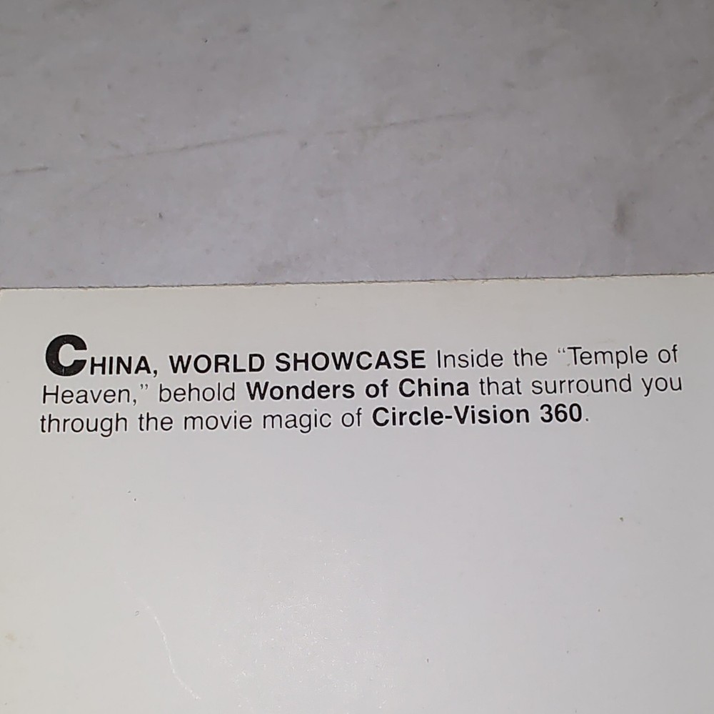 This vintage Disney postcard instantly transports me back to the magic of EPCOT's early days! The China pavilion looks absolutely stunning, and it's such a nostalgic treasure for any Disney fan's collection.
