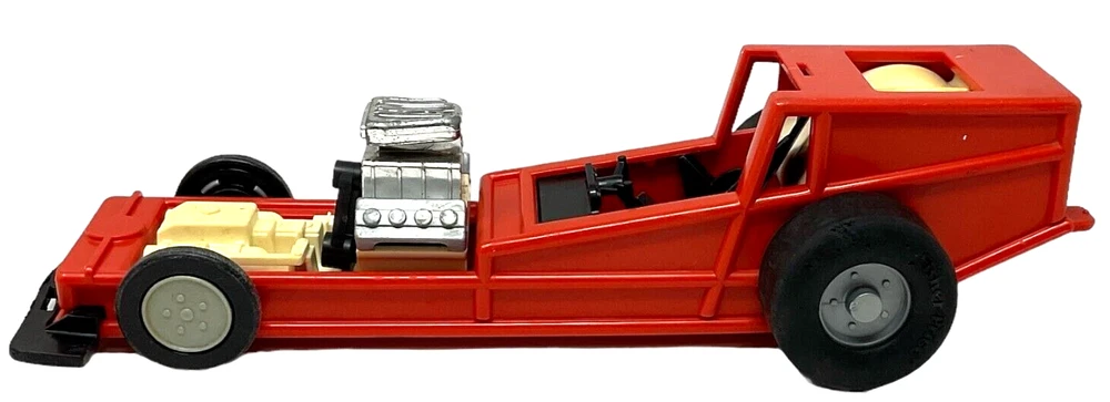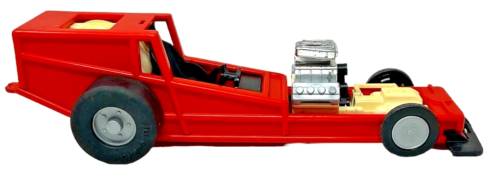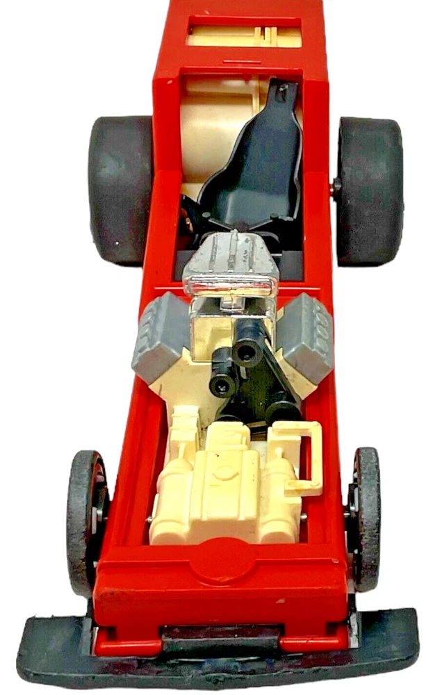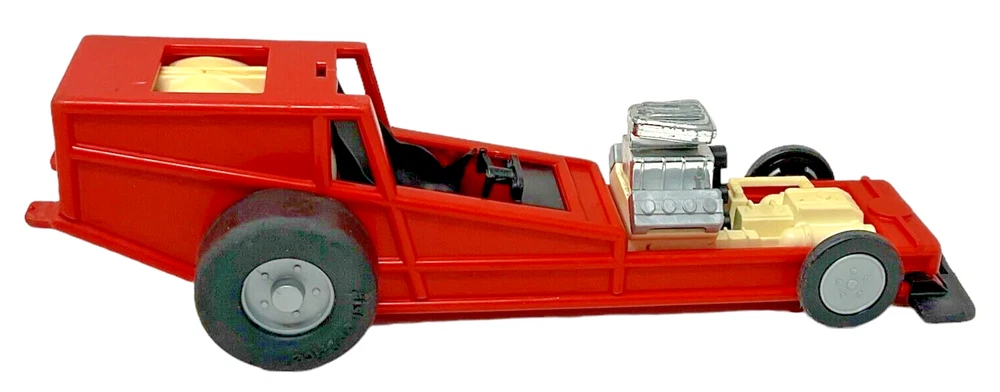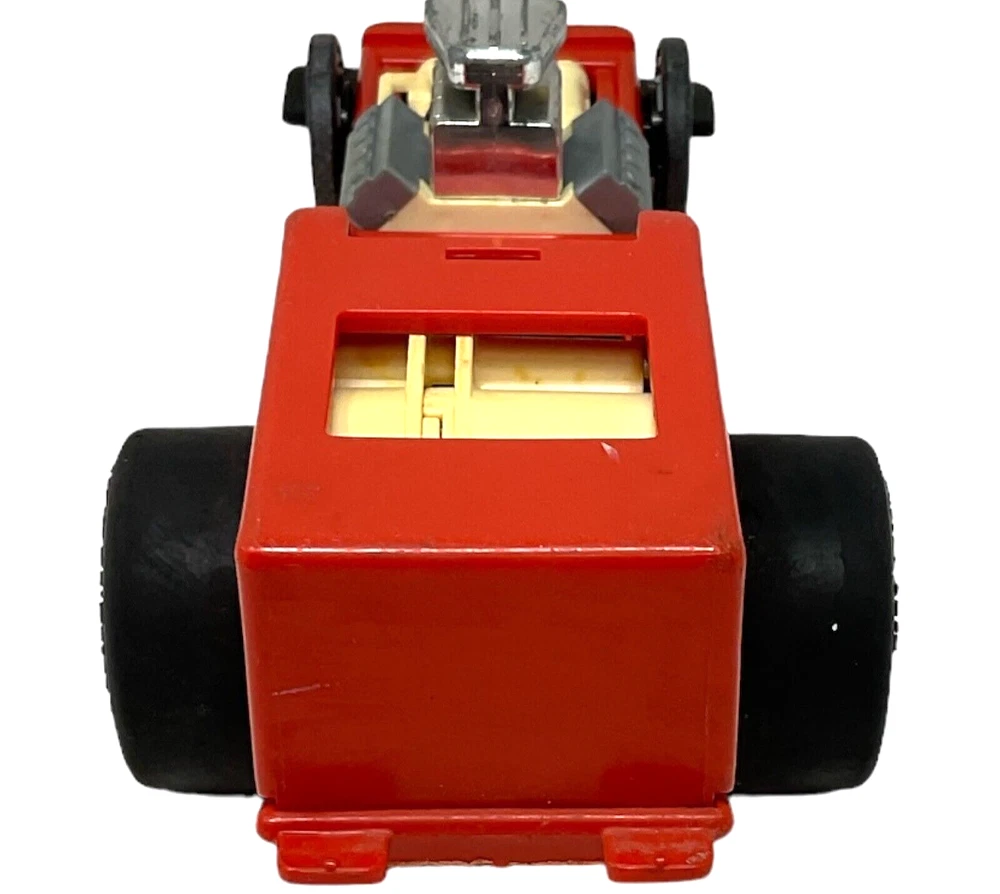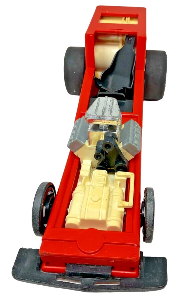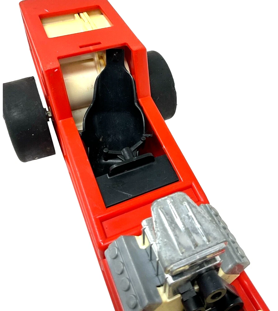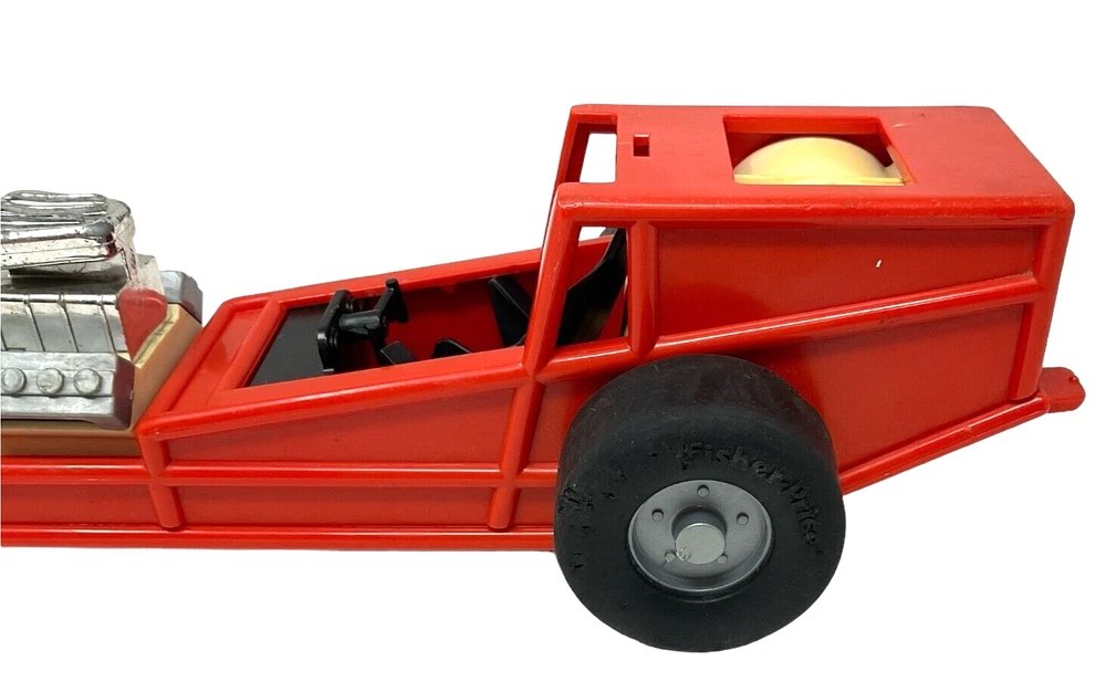 1982 Fisher Price Red Pullback Dragster Race Car #369 - 12" Long. Dragster is in Fair to Good Used Condition with Visual Signs of Age & Use. Pullback Feature Works Perfectly. Tires Have Some Chew Marks. *NO Car Body or Driver/Figure.