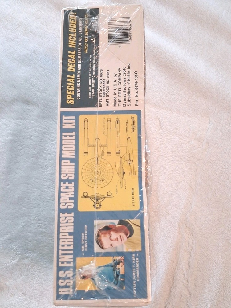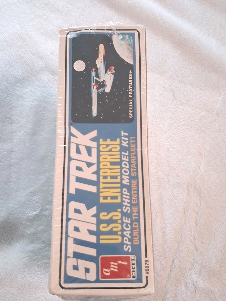 Theme: Science Fiction UPC: 0036881066767 Franchise: Star Trek Subject: Star Trek, The Original Series Brand: AMT gtin13: 0036881066767 Skill Level: 3 – Intermediate Features: Not Painted, New In Box Item Width: 2 in Character: USS Enterprise Unit of Sale: Single Unit Item Height: 2 in Customized: No Country of Origin: United States Vintage: Yes Scale: 1:650 Item Length: 10 in Type: Model Kit Material: Plastic Model: 6676 Set Includes: Ship Age Level: 17 Years & Up Assembly Status: Unassembled Kit Item Weight: 1 lb Year Manufactured: 1983 Color: Gray Style: Star Trek The Original Series