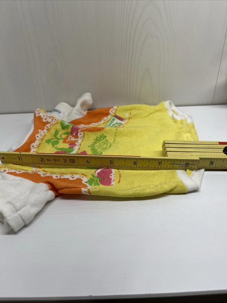 VGUC for age. Does have some wear due to age and play. One seam the stitching came apart on the shoulder, see photo of close up. No rips or tears some mild fading I believe as I cannot confirm the brightness of the romper brand new smoke-free home I use calculated shipping, so buyers only pay the actual shipping costs I incur. This approach helps keep expenses low for the buyer.