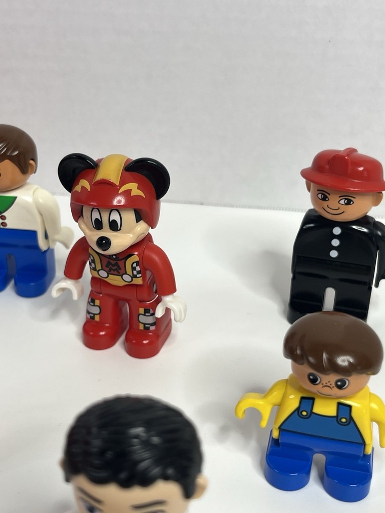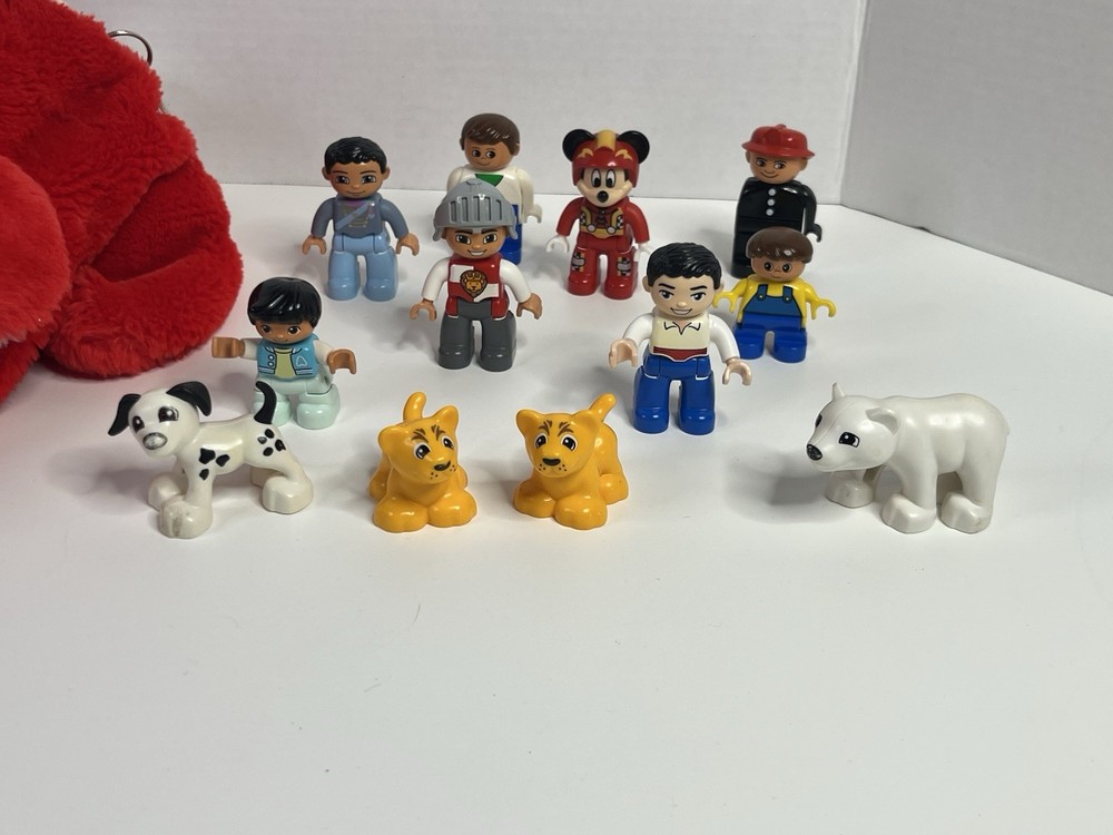 The Vintage 1984 LEGO DUPLO Plush Bunny Zip Bag Purse is a charming red plastic storage bag featuring a cute bunny design. This collectible item includes a keychain for easy access, perfect for young LEGO enthusiasts aged 4 and above who love animal-themed toys. With its nostalgic appeal and unique features, this vintage piece from 1984 is a must-have for any LEGO fan looking to add a touch of retro charm to their collection also it includes 12 figures 4 animals and 8 people fireman is missing one arm.