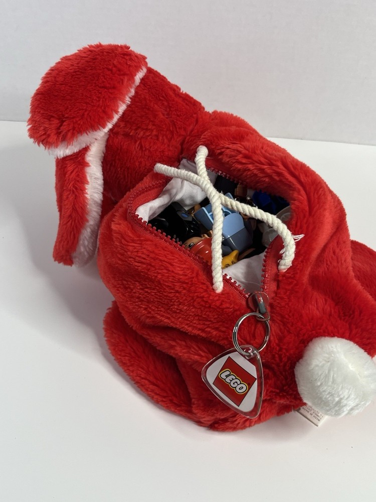 Vintage 1984 Logo DUPLO Plush Bunny Zip Bag Purse w/KEYCHAIN Red W/ Figures