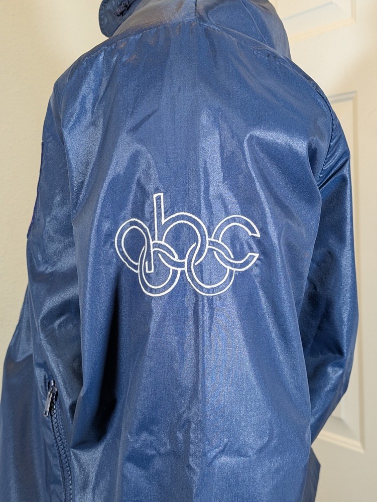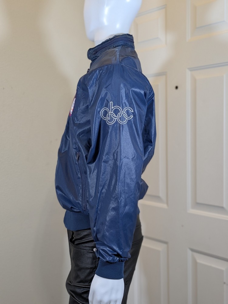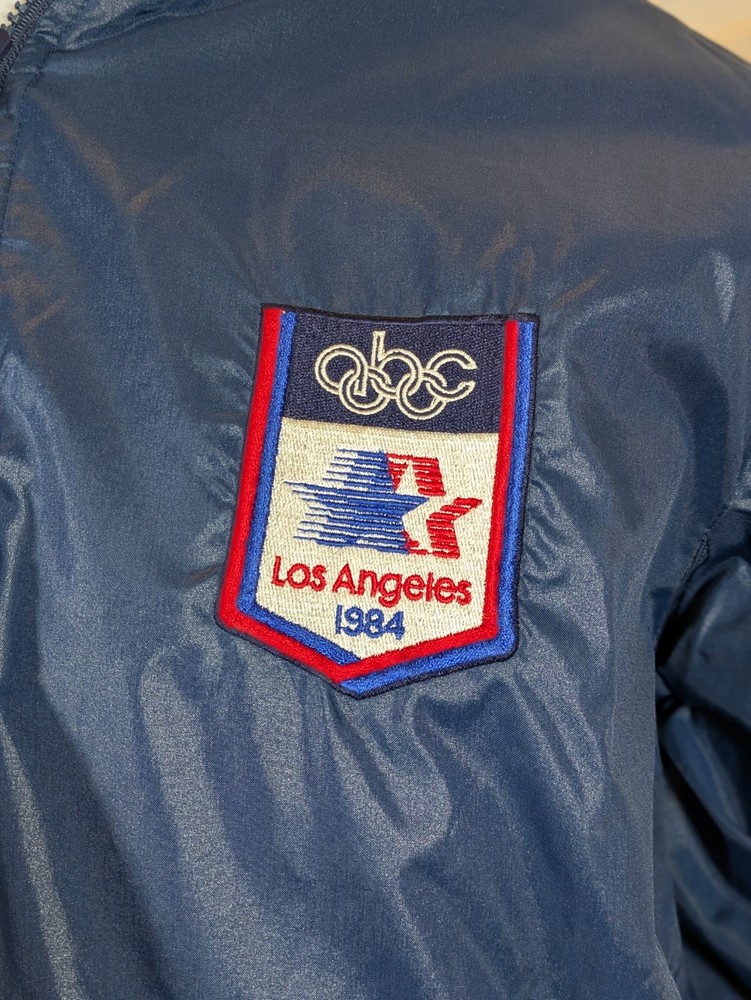 Item Specifics: Size: Medium (Pit to Pit: 24", Length: 28", Sleeve: 25") Year: 1984 Color: Navy Blue Brand: La Mode Du Golf (Los Angeles) Material: 100% Nylon Condition: Pre-owned, Very Good Vintage Condition Event: 1984 Summer Olympics (Los Angeles) Description: Add a "Grail" piece to your collection with this authentic ABC Sports 1984 Los Angeles Olympics Jacket. Issued only to the American broadcasting team, this jacket is a verified artifact from the Jimmy Hadder professional sporting estate. Key Features: Exclusive Media Branding: Features the iconic ABC Sports "Star" Olympic logo patch on the left chest and a large white embroidered ABC logo on the left sleeve. Local Heritage: Manufactured in Los Angeles by La Mode Du Golf, adding to the authentic "hometown" history of the '84 Games. Functional Design: Features a full-zip front, elastic ribbed cuffs/waist, and a unique zippered collar with a hidden stowaway hood. High-Sheen Finish: The classic 80s navy nylon has a professional, "sideline" luster that has held up beautifully. Measurements (Lying Flat): Pit to Pit: 24 inches Length: 28 inches Sleeve: 25 inches Condition Note: This jacket is in very good vintage condition. The fabric is clean with no major stains or holes. The zippers are fully functional, and the embroidery is crisp. Stored in a smoke-free home. Includes a Certificate of Provenance from the Jimmy Hadder estate. Shipping: Free Shipping via USPS Ground Advantage. This item will be shipped in a rigid box with Signature Confirmation required.