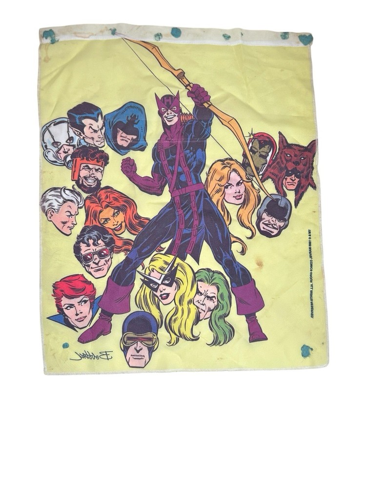Marvel Banner Rare Hawkeye and the West Coast Avengers 1985 18.5 X 15 inches. You can see the dots they used to stick it to the wall on the front side. Some scuffs on the banner. Comes from a smoke free home. Feel free to message me and all offers welcomed. D-3