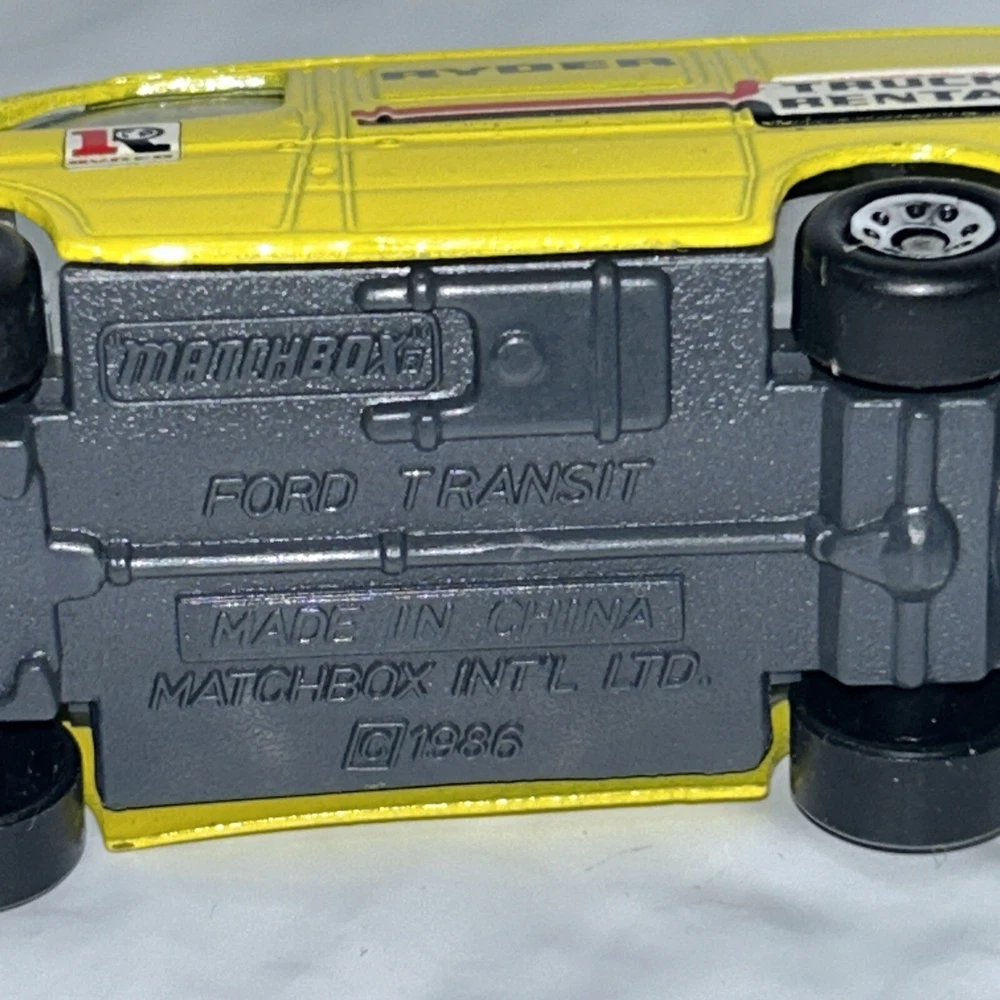 Material:DiecastTheme:RyderSeries:Matchboxgtin13:Does not applyVehicle Make:FordAge Level:3-4 Years, 12-16 Years, 17 Years & UpModel:TransitCharacter Family:RyderBrand:MatchboxVehicle Year:unknownGender:Boys & GirlsColor:YellowScale:1:63Recommended Age Range:Adult CollectorCustomized:NoFeatures:Limited Edition, CollectorUPC:Does not applyCountry/Region of Manufacture:UnknownVehicle Type:Delivery TruckYear of Manufacture:1986Autographed:No