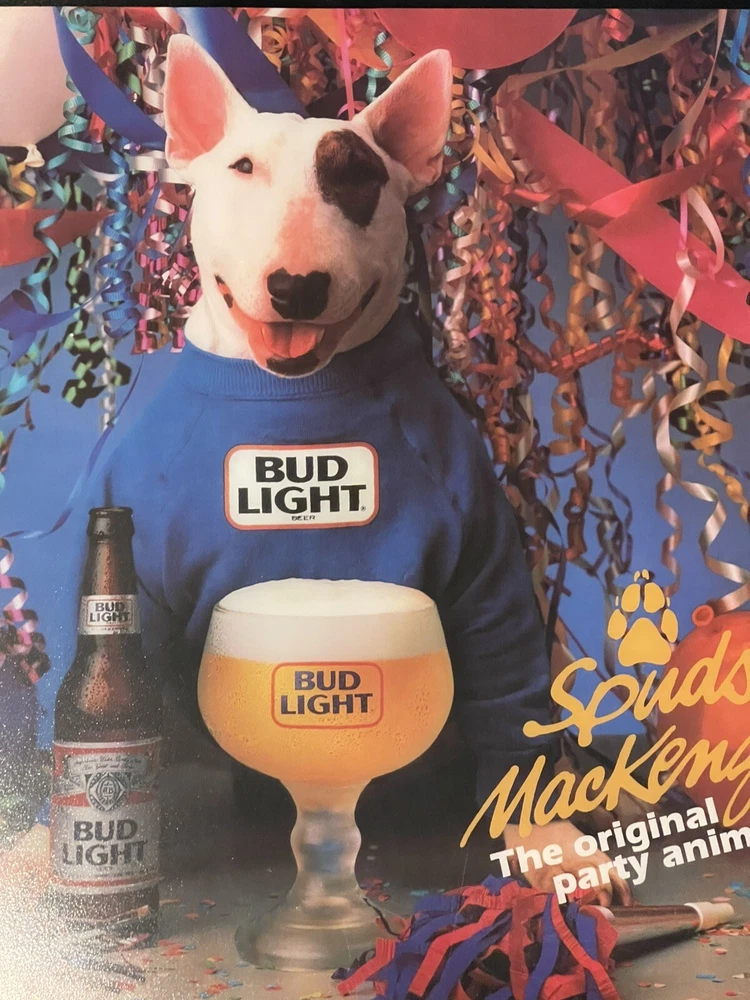 Illuminate your space with a touch of vintage charm with this 1987 Bud Light Spuds MacKenzie Beer Light Lamp Bar Sign. A true gem for collectors, this piece celebrates the iconic Budweiser breweriana with a classic design that's sure to be a conversation starter in any setting. this sign/ light is a testament to the brand's rich history and the beloved character of Spuds MacKenzie. It's a non-modified, authentic object that promises to enhance your collection of beer memorabilia or add a nostalgic flair to your home bar or man cave. Broken corner- see pictures Electric Works- lights up when plugged in Pull chain @18”x18” square @5” deep