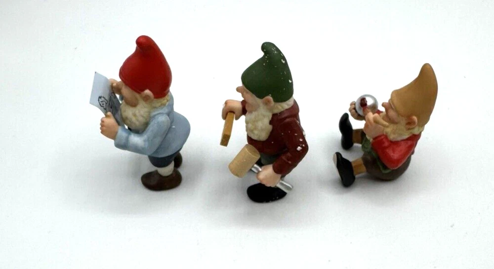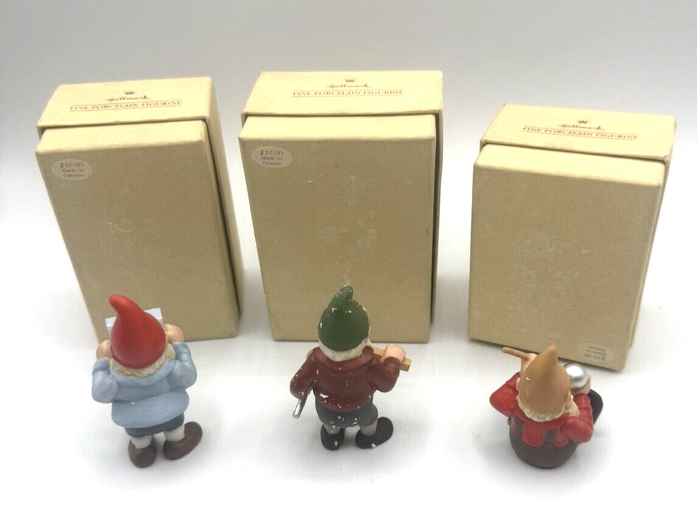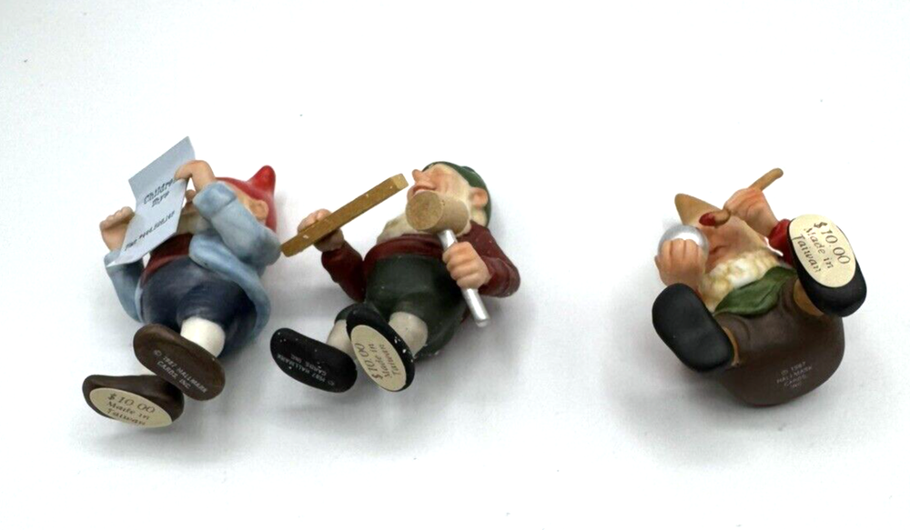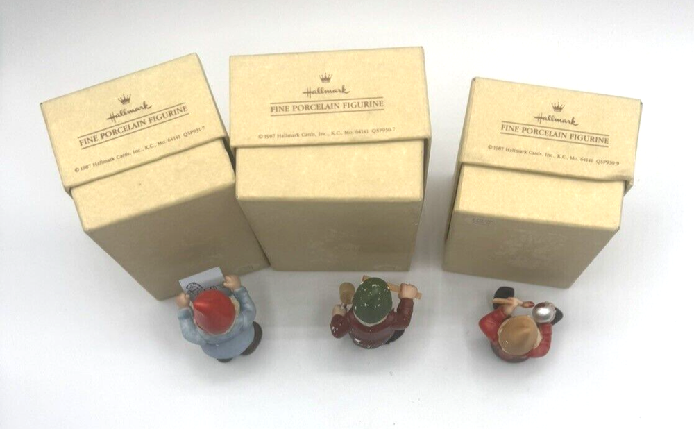 HomeVintage 1987 Hallmark Gold Crown Toymaker Elves Porcelain Figurines Set of 3