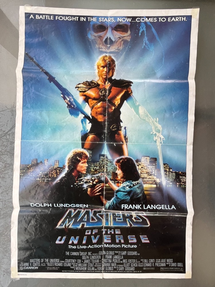 MASTERS OF THE UNIVERSE Original 18.5”x28” Poster - 1987 by The Cannon Group Featuring an iconic cast: Dolph Lundgren, Frank Langella, Courtney Cox, James Tolkan, Christina Pickles, and Meg Foster. This poster is a rare and nostalgic piece from the 1987 film, Masters of the Universe . Condition: This vintage poster is in acceptable condition with significant folds and creases present. It has been stored by its original owner, and while there are signs of wear consistent with its age, it remains a great collectible for fans of the movie. It will come folded. Please review the photos provided carefully and feel free to reach out with any questions before making a purchase. Please REVIEW ALL PICTURES carefully to determine the item's condition. Item is used and is being sold "as is" and the item(s) listed, is the item(s) you will be receiving. Your bid confirms that you have reviewed all images in detail and are satisfied with the item you are purchasing. If you have ANY QUESTIONS, please message me before bidding. Shipped via USPS and will combine shipping. When you are done selecting items and adding them to your cart, request a combined shipping total from me and I will send you a combined invoice that reflects your new shipping total. I CANNOT REFUND YOU ANY SHIPPING OVERAGE THAT YOU PAY IF YOU GO THROUGH THE CHECKOUT AND PAY FOR EACH ITEM AND SHIPPING CHARGE. Message me with any questions you may have. Thanks for looking! For more awesome 80s and 90s toys check out my online store - Awesome Toys from the Attic. My listings are all from my personal collection which I am now clearing out of my parent's attic. I will be posting tons of action figures, accessories, fast-food promos, comics, cards and more! Are you looking for anything in particular?
