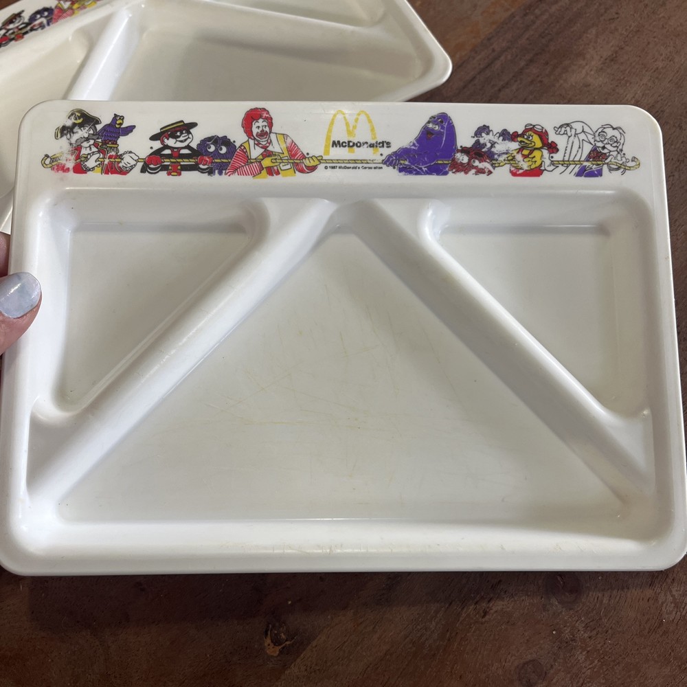 This vintage McDonald's Happy Meal plastic child character serving tray plate from 1987 is a must-have for any collector of restaurant and fast food memorabilia. Featuring a colorful design and the iconic McDonald's logo, this original piece is made in the United States and is in excellent condition. Perfect for display or use, this snack plate is a great addition to any collection. 9” long 6.25” tall