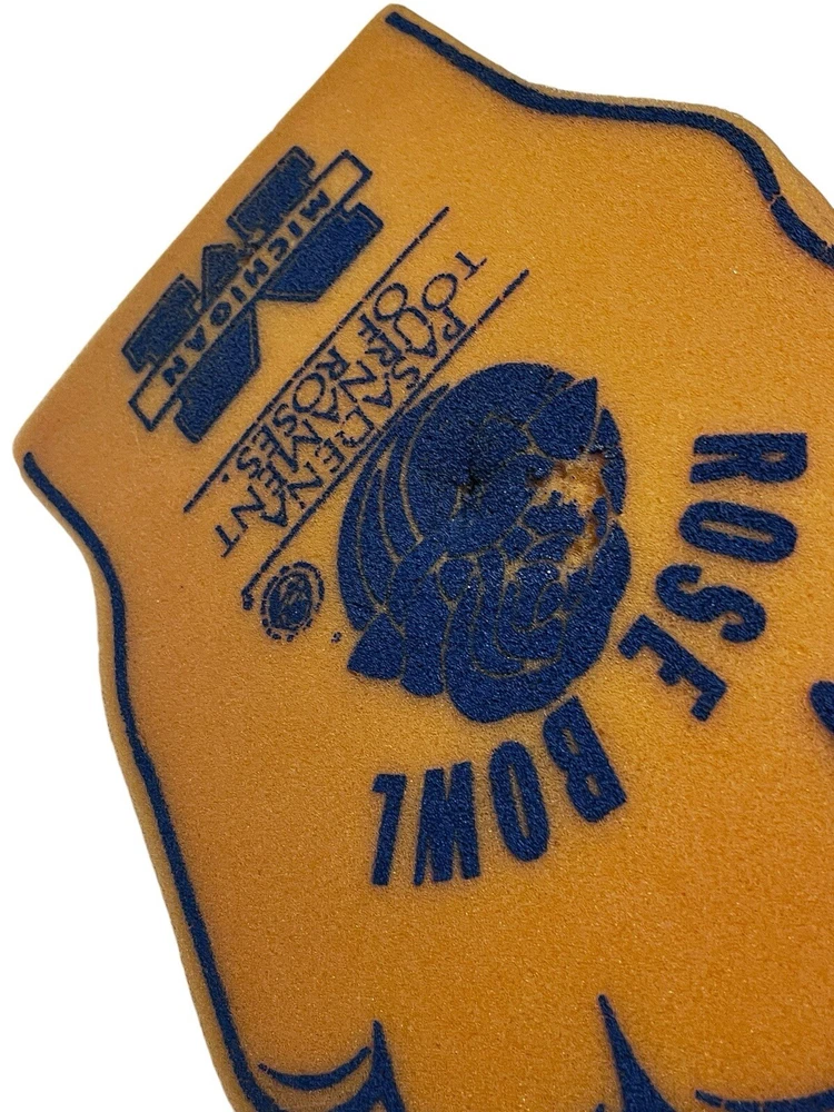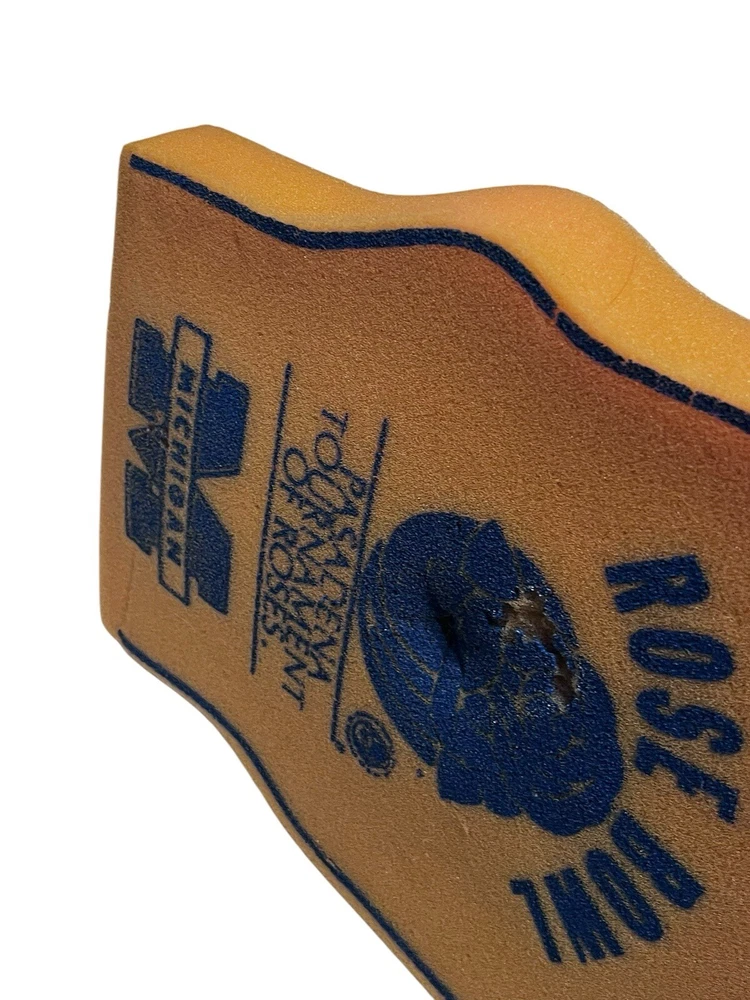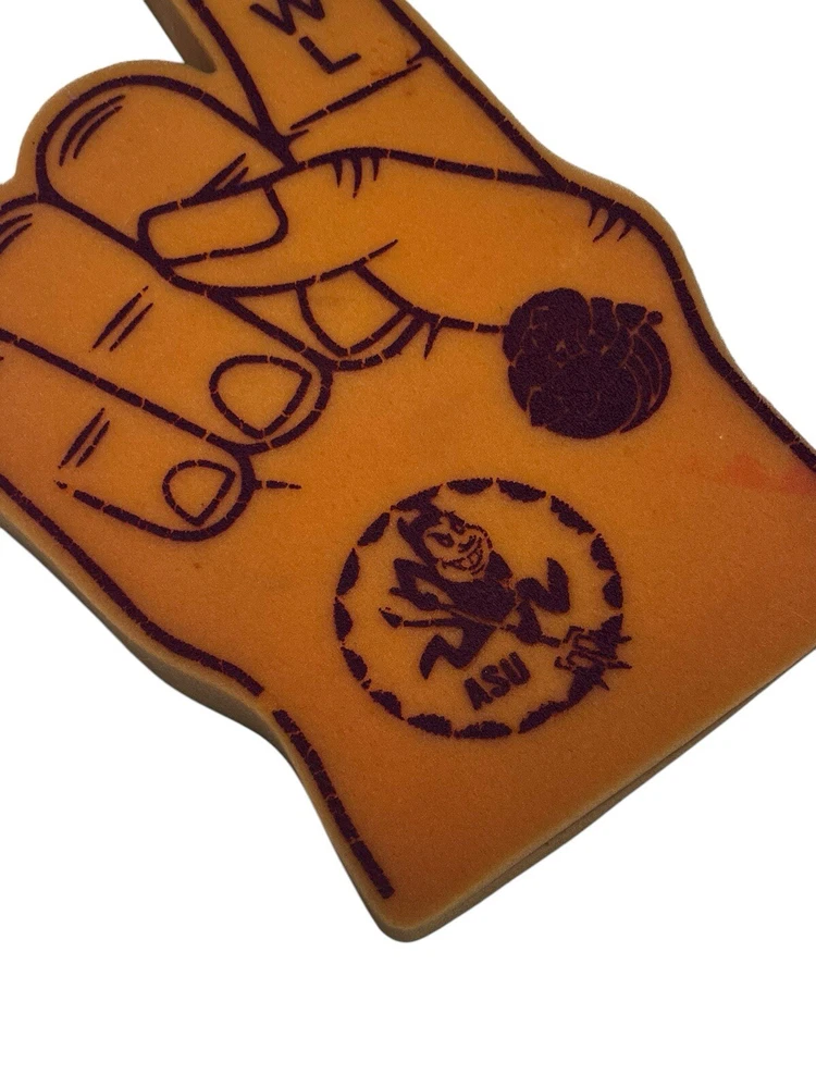 Vintage Rose Bowl Foam Finger Michigan Arizona State 1987 23” Pasadena Football. Good preowned condition showing low normal signs of wear/use. The farm is showing some light peeling/flaking simply from age. Very cool collectors piece. Represents the Michigan Wolverines on one side and the Arizona State Sun Devils on the other side. It is approximately 23“ x 10“. Please see photos for design and condition details. Don’t hesitate to message me with any questions.