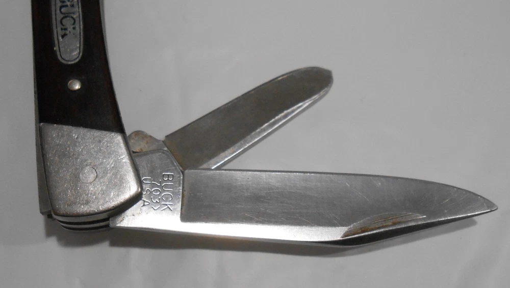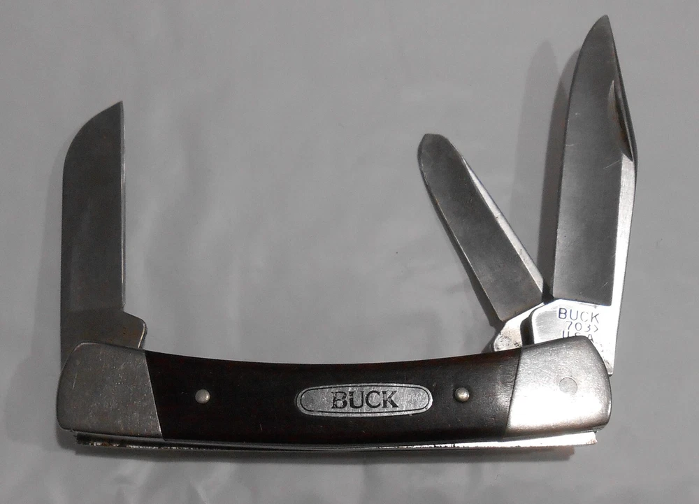Color: Brown Model: 703 Handle Material: Wood Number of Blades: 3 Opening Mechanism: Manual Brand: Buck Type: Pocketknife