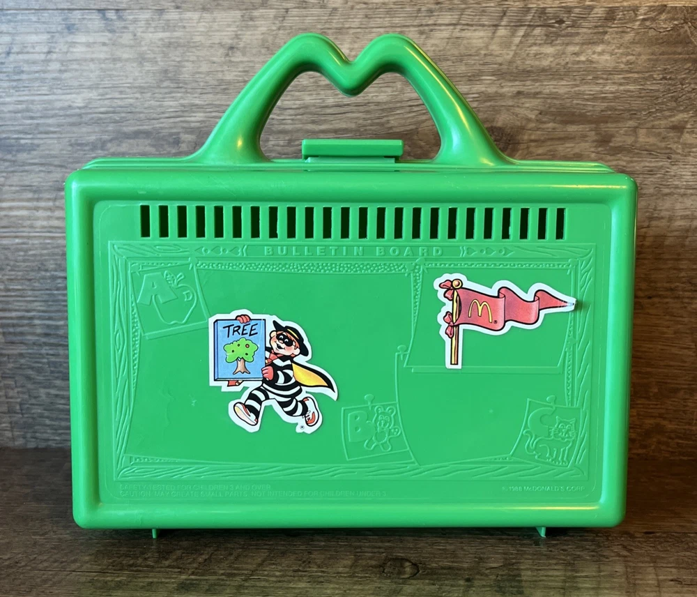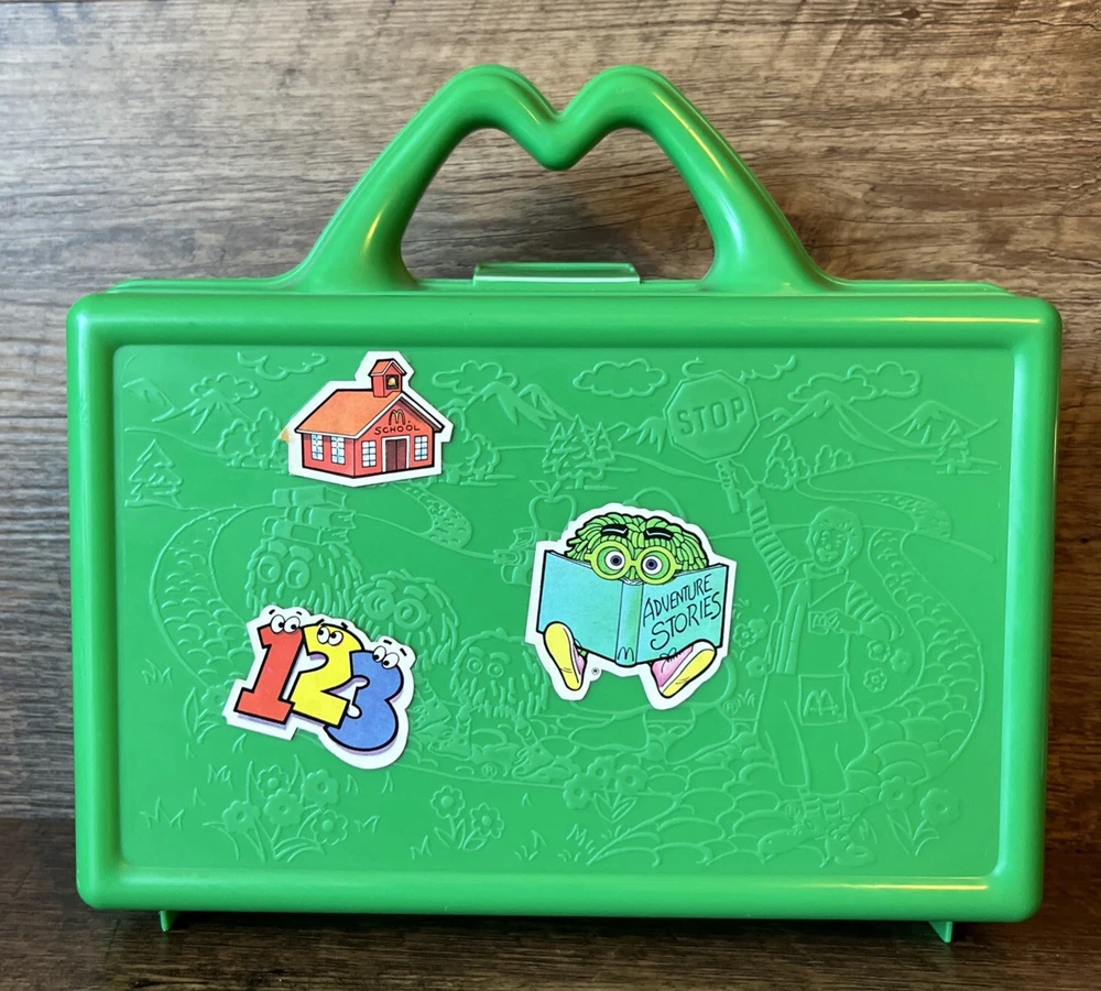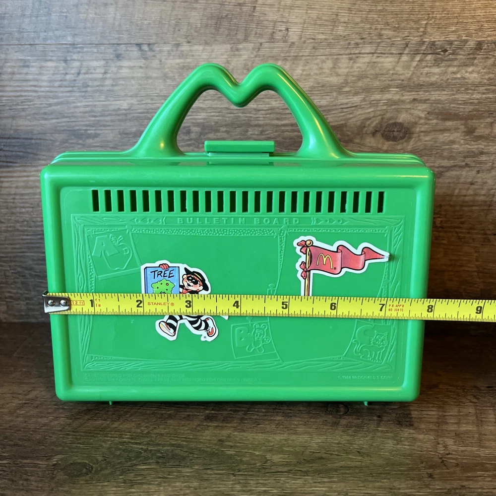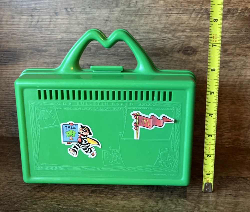 Vintage 1988 McDONALDS Green Happy Meal On the Go Lunch Box Pencil Case Stickers Please see pictures for minimal wear, some sticker wear. Good condition for age. Check out our store, Shiloh Trading Post, for more of the things you like! We combine shipping. Thank you for shopping at Shiloh :)