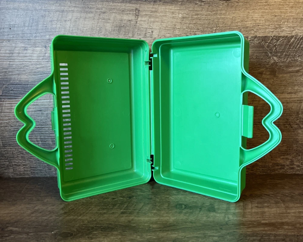 Vintage 1988 McDONALDS Green Happy Meal On the Go Lunch Box Pencil Case Stickers
