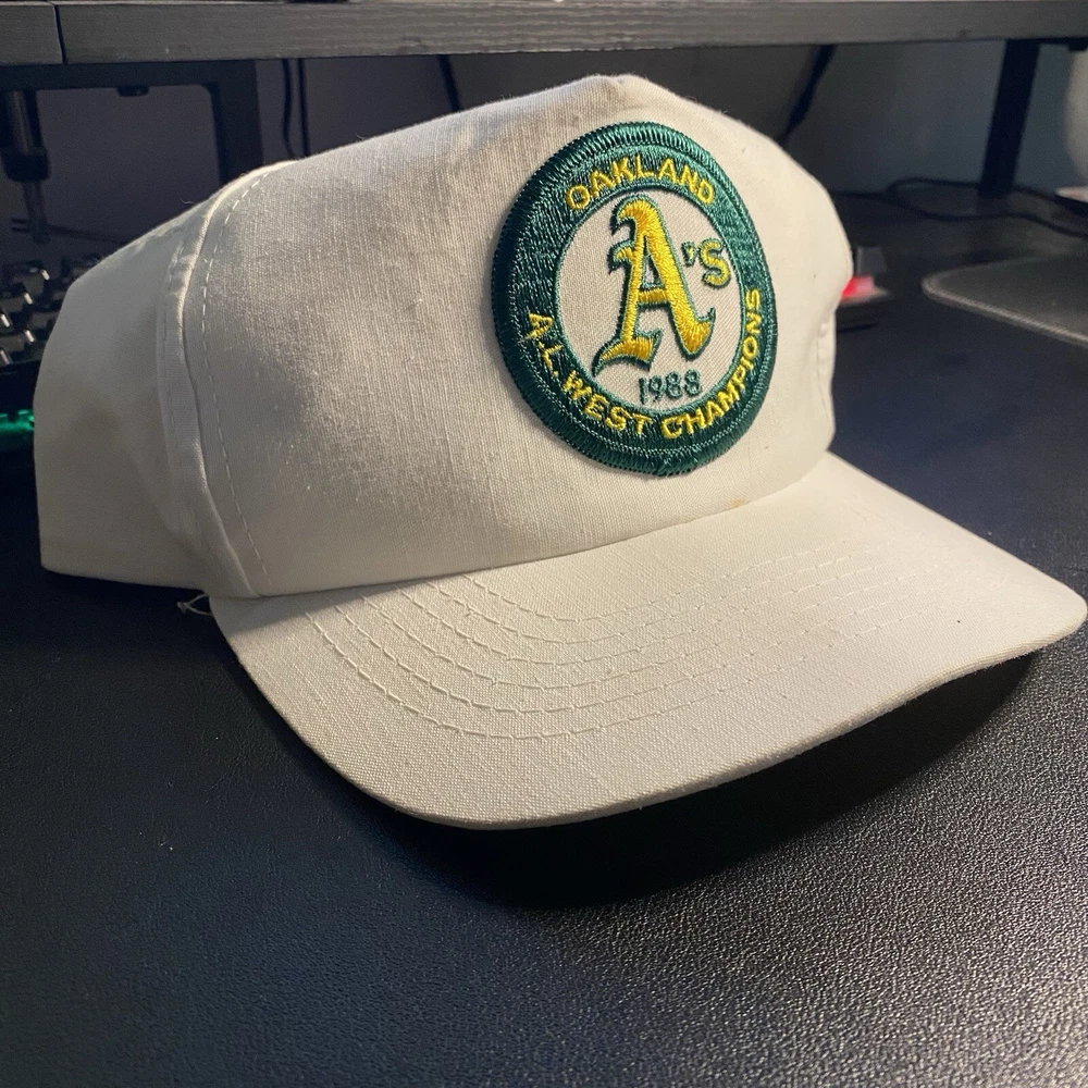 Here’s A Really Cool & Hard To Find 1988 Sports Specialties Oakland As AL West Champs Hat. It’s In Excellent Shape & Appears To Have Barely (If Ever) Been Worn. Awesome Patch On This Snapback From The Bash Bro Days! Ships Fast! Please Message Us With Any Questions You May Have & We’ll Be Sure To Respond Swiftly. Have A Great Day!