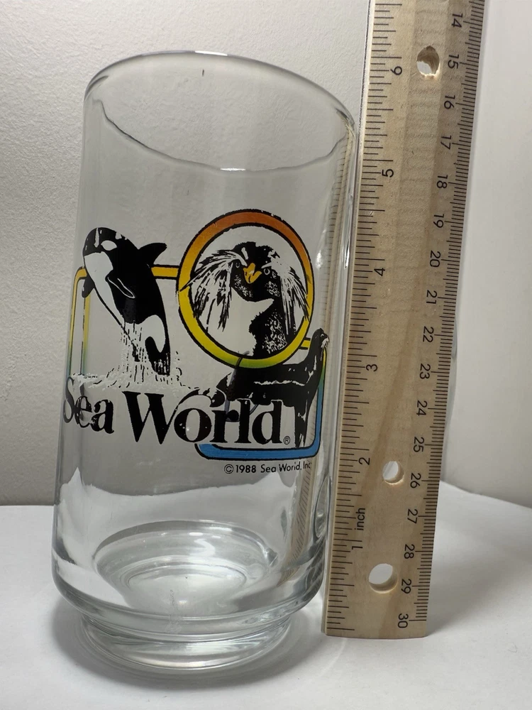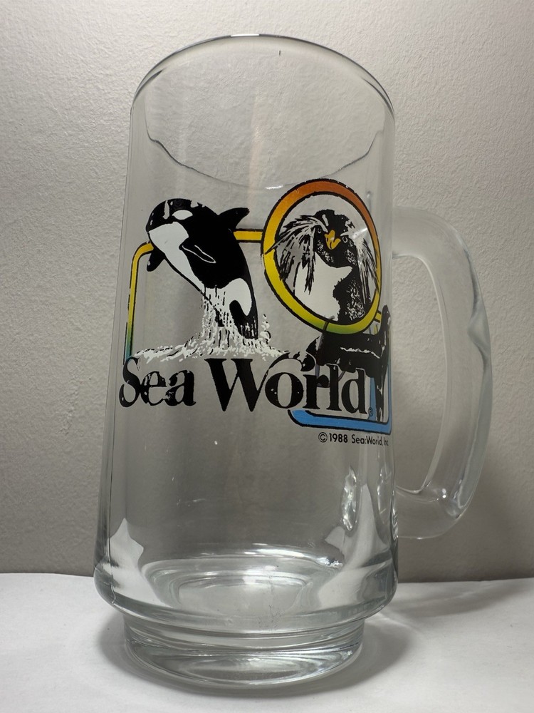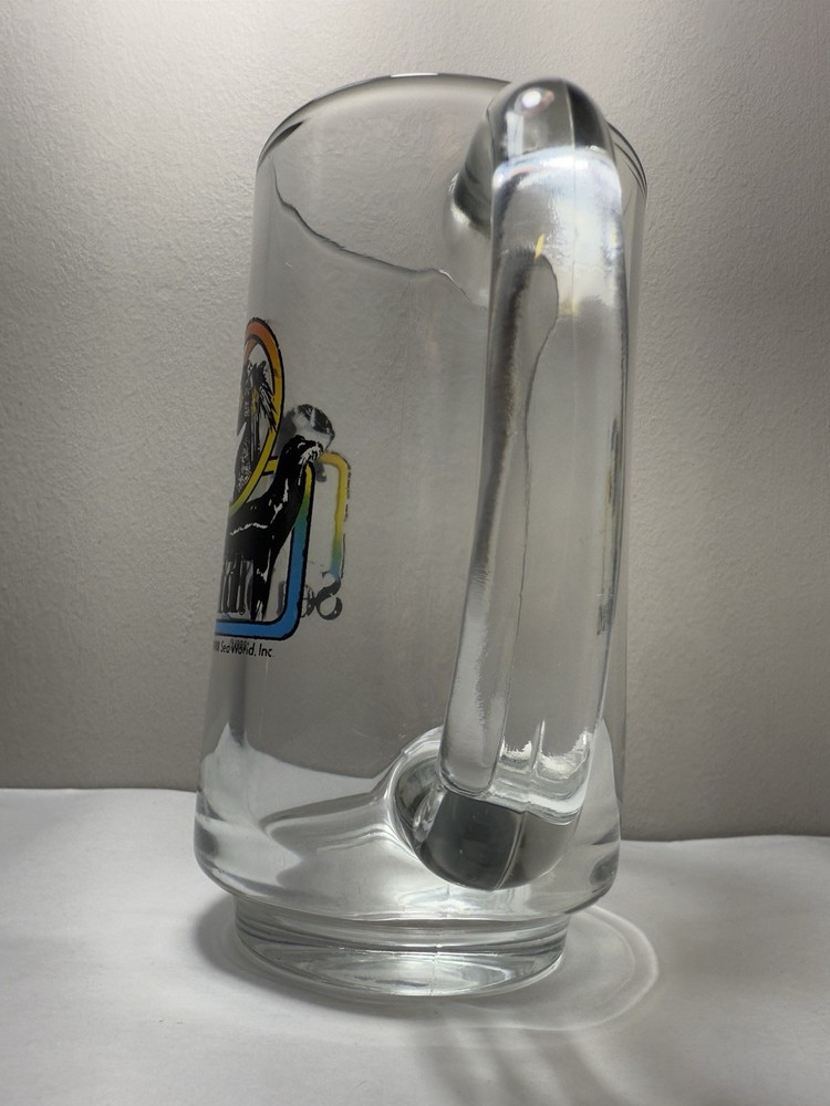 Vintage 1988 Sea World Shamu Clear Glass Handled Souvenir Mug