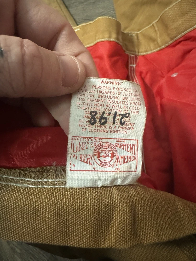 Vintage 1989 CARHARTT Tan Workwear Jeans Pants USAMade Red Quilted Lining Union Vintage 1989 Carhartt Lined Pants 100 Years Tagged Size 38x30 measurements fit 36x30 Great Fade & Wear & Stains Shown #carhartt #lined #vintage